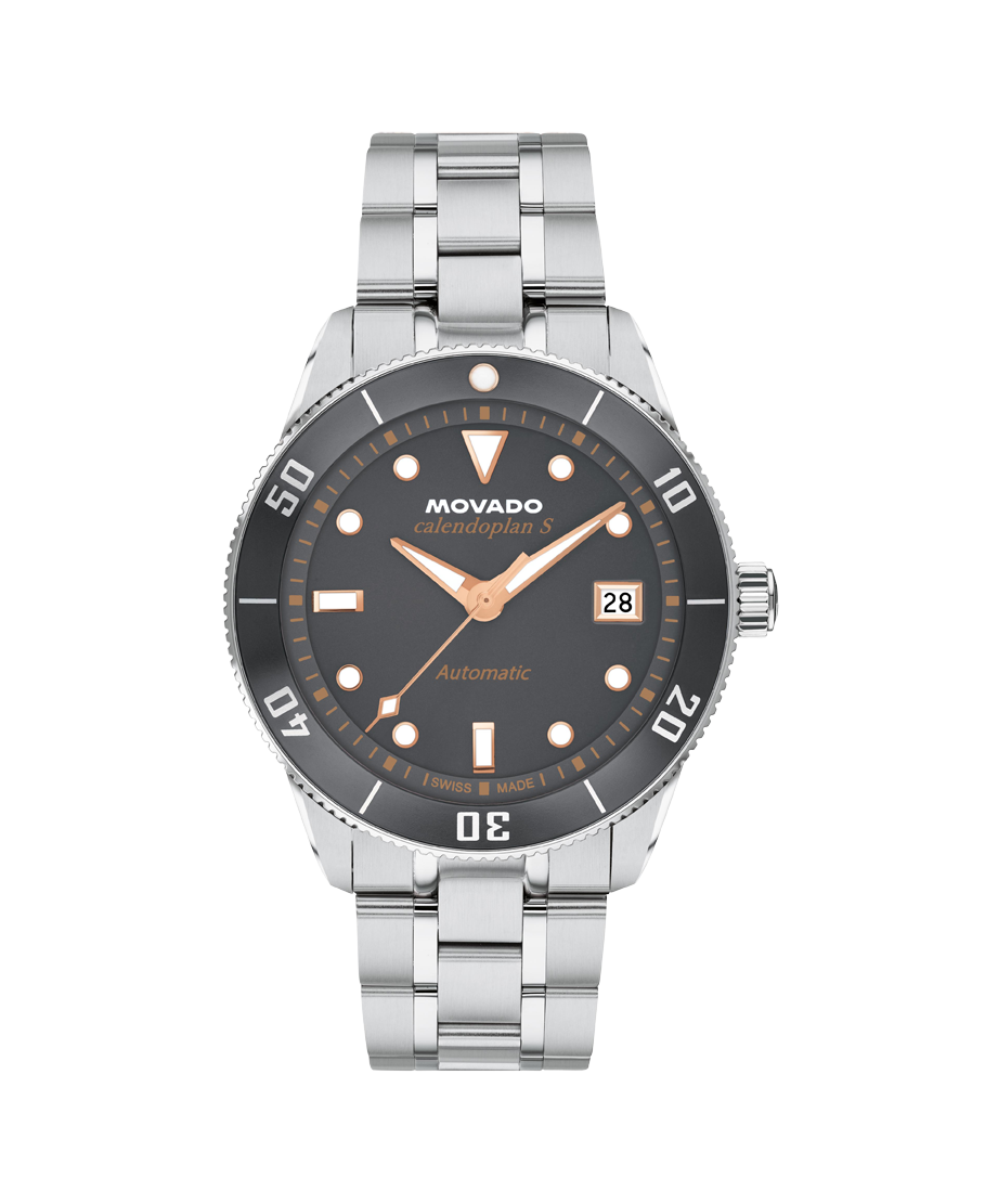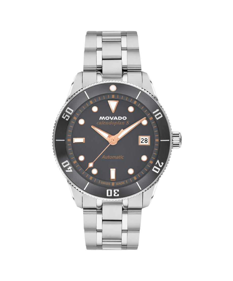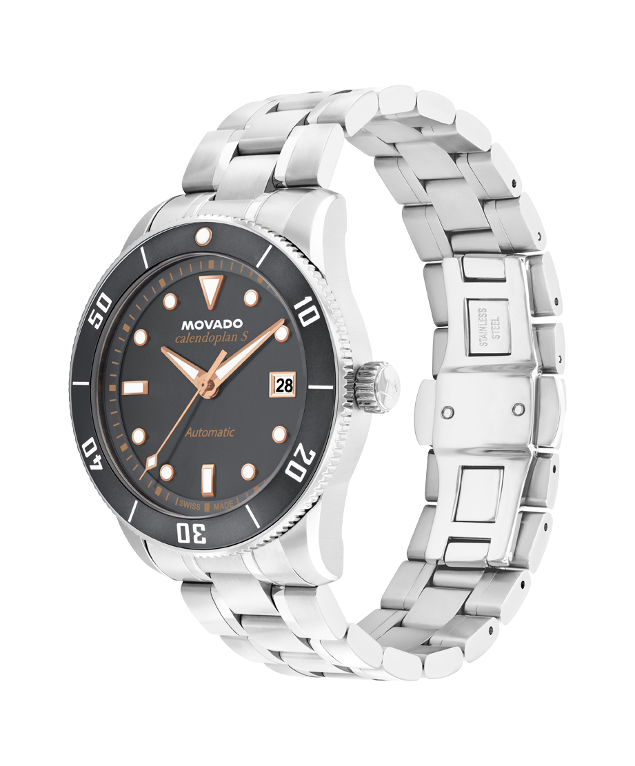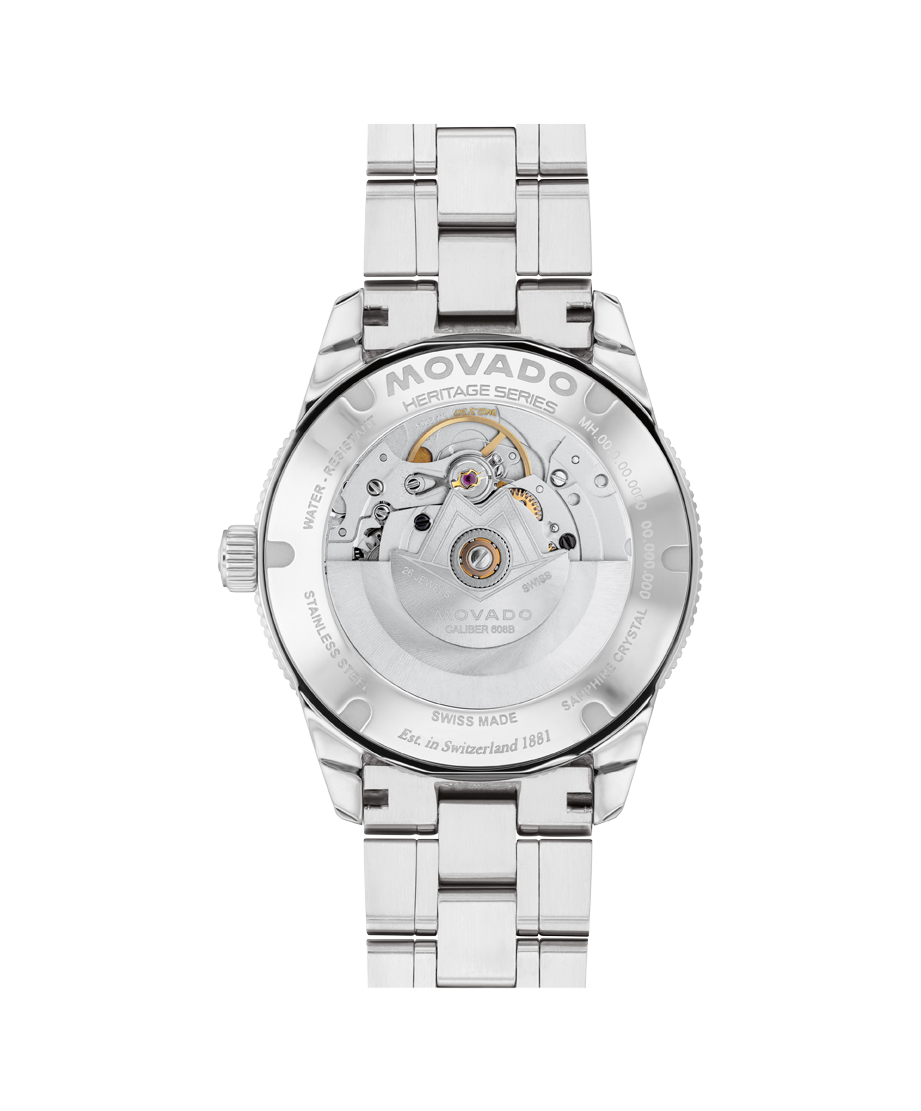 A Swiss made automatic movement drives this watch, powered by the motion of your wrist.