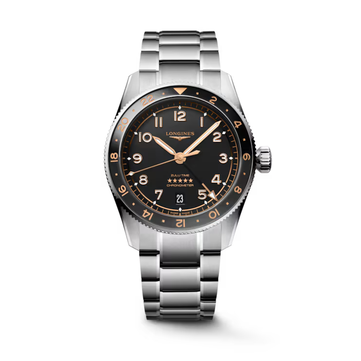 The LONGINES Spirit Zulu Time typifies the brand’s century-old expertise in timepieces with multiple time zones. Its origins and its name come from the first LONGINES dual time zone wristwatch manufactured in 1925, which featured the Zulu flag on its dial – Zulu referring to the letter “Z” that designates universal time for aviators. Aesthetically, the LONGINES Spirit Zulu Time stands out with its meticulous execution and the particular care given to the various details. It features a bidirectional rotating bezel with a ceramic insert. Each model is powered by an exclusive LONGINES calibre, equipped with a silicon balance-spring, resistant to magnetic fields and chronometer-certified by the COSC.