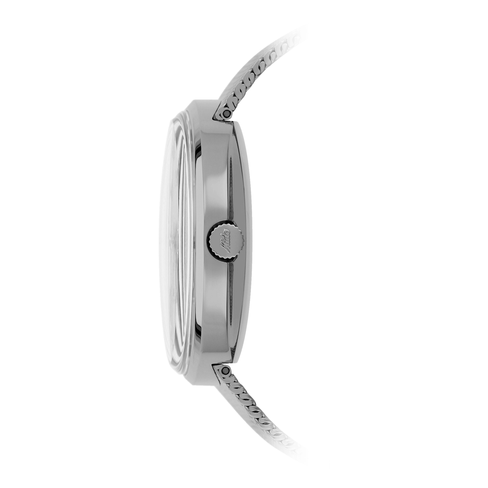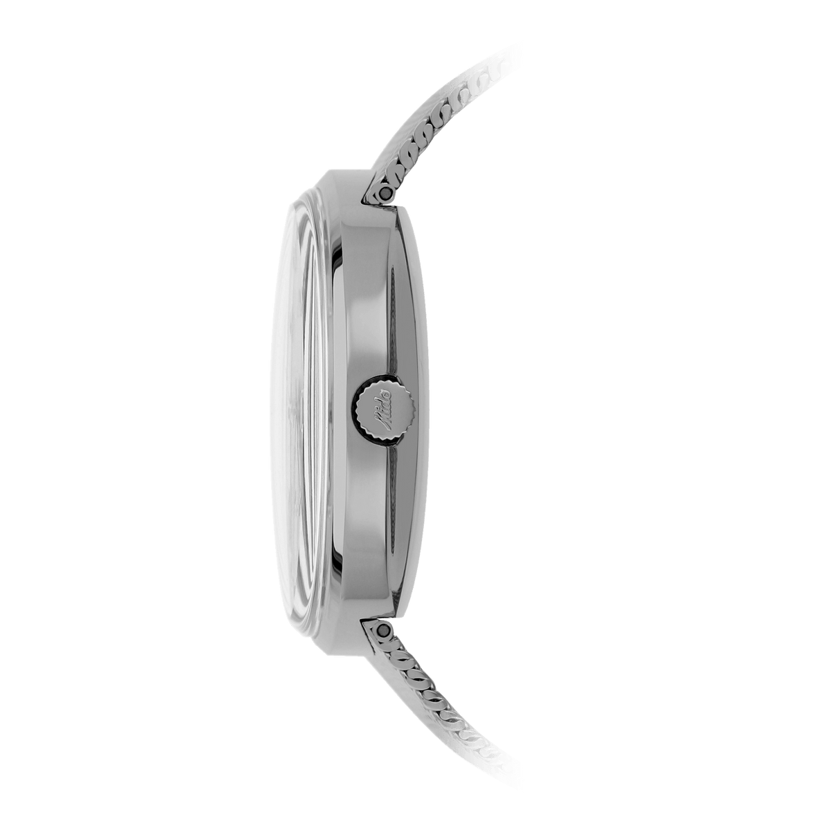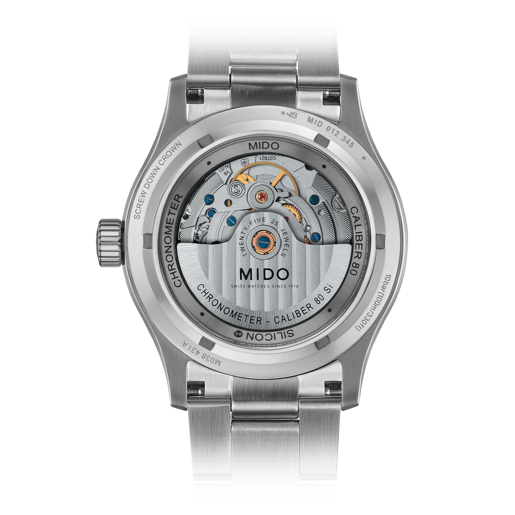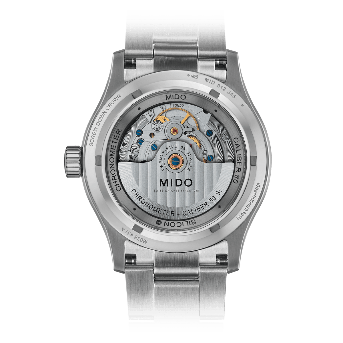 The Multifort Chronometer¹ watch is equipped with a Caliber 80 exclusive automatic movement that is enhanced with silicon technology. Remarkably accurate and resistant, it features the Geneva Stripes that are specific to the collection. The watch is completed by a graduated bezel and a more refined look thanks to its satin-finished indexes and hands. Its special case back has an integrated and engraved flange.