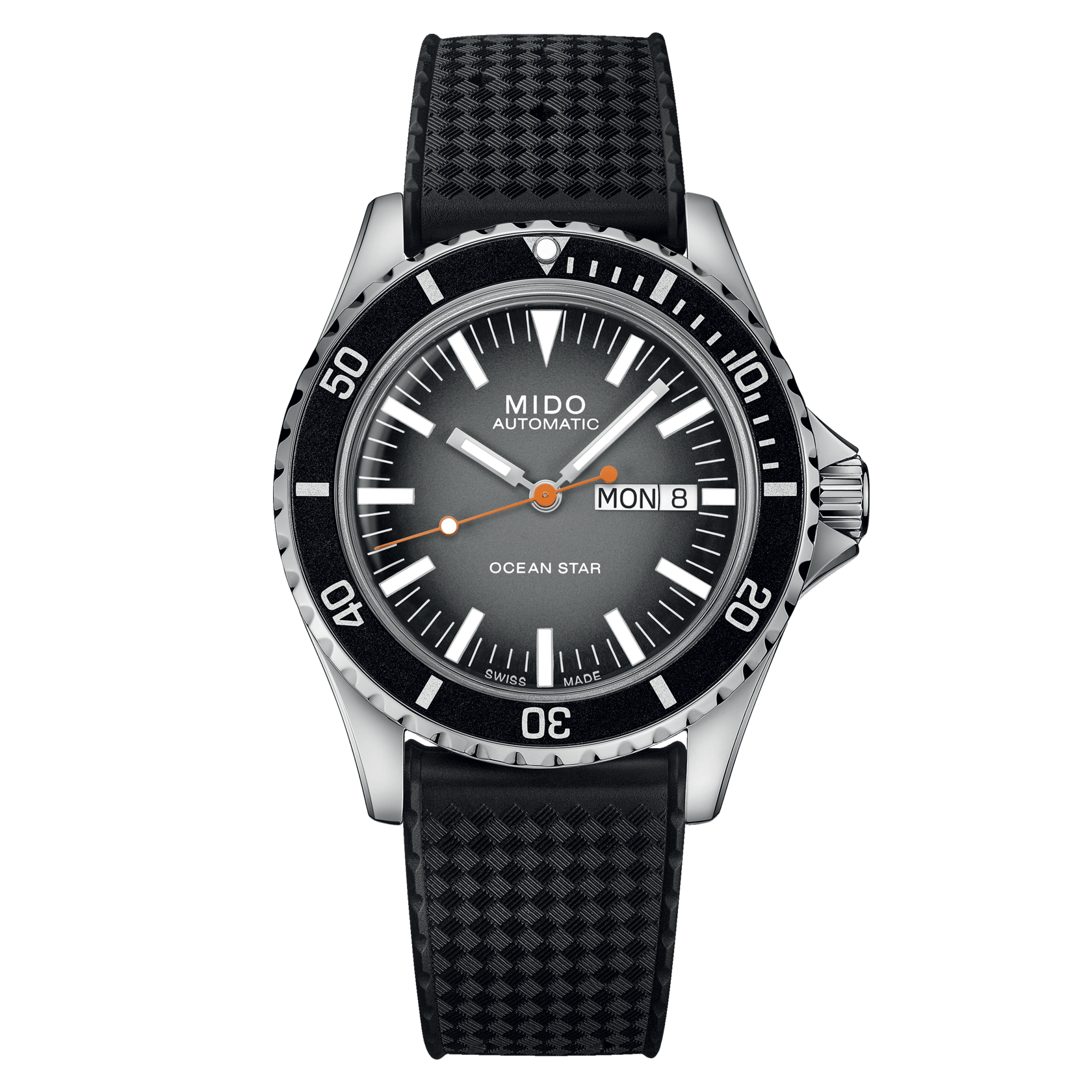 Mido pays tribute to the Ocean Star collection. In subtle reference to the past, the Ocean Star Tribute Swiss watch reinterprets the aesthetic codes of the diving models from the 1960s. It is fitted with the Caliber 80 automatic movement with up to 80 hours of power reserve, is water-resistant up to a pressure of 20 bar (200 m/656 ft) and features a unique strap offering maximum comfort.