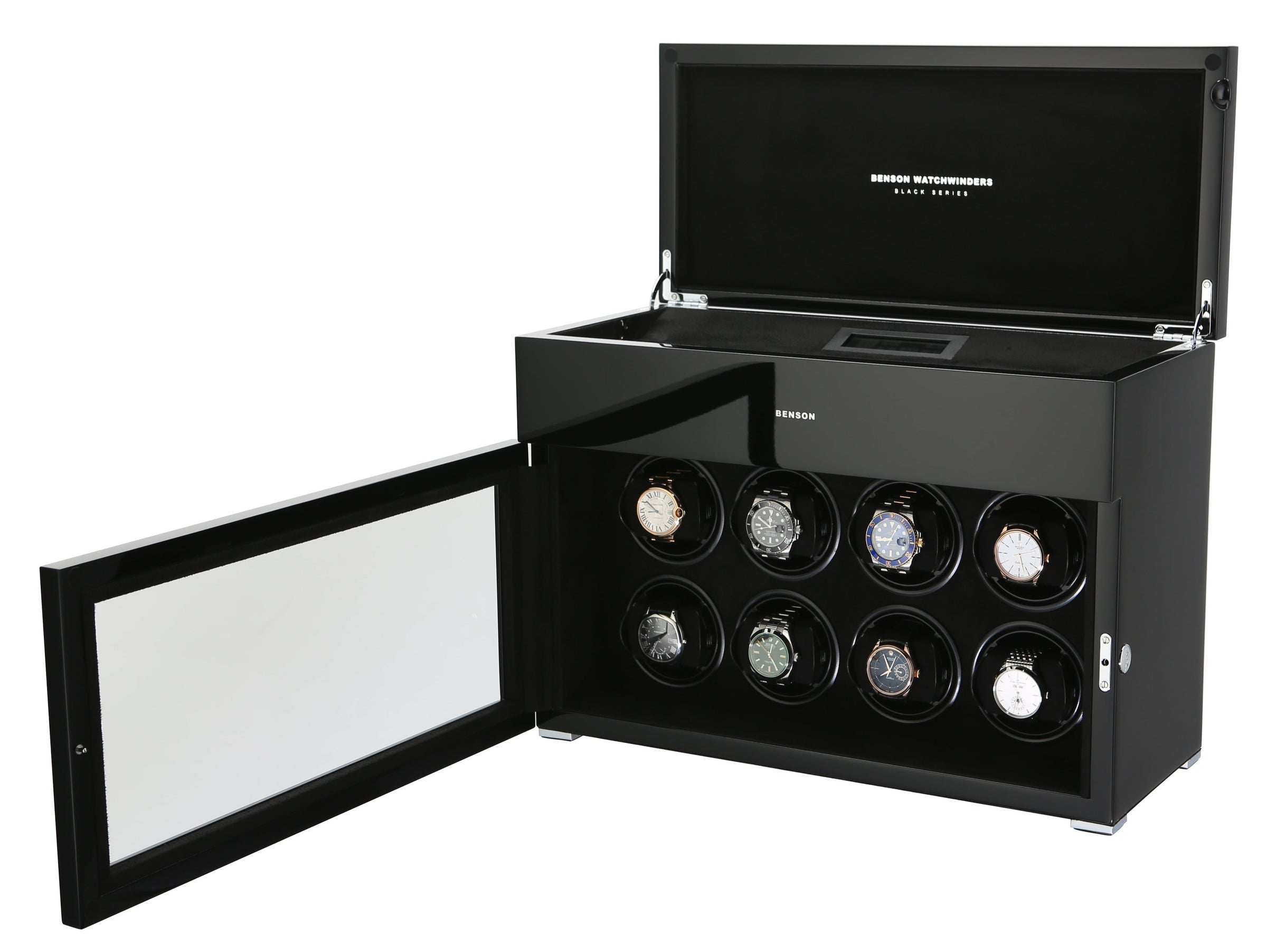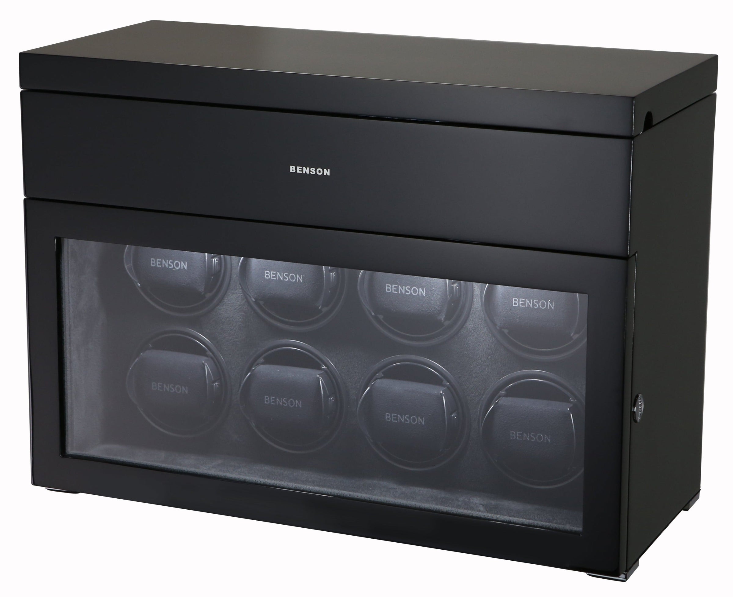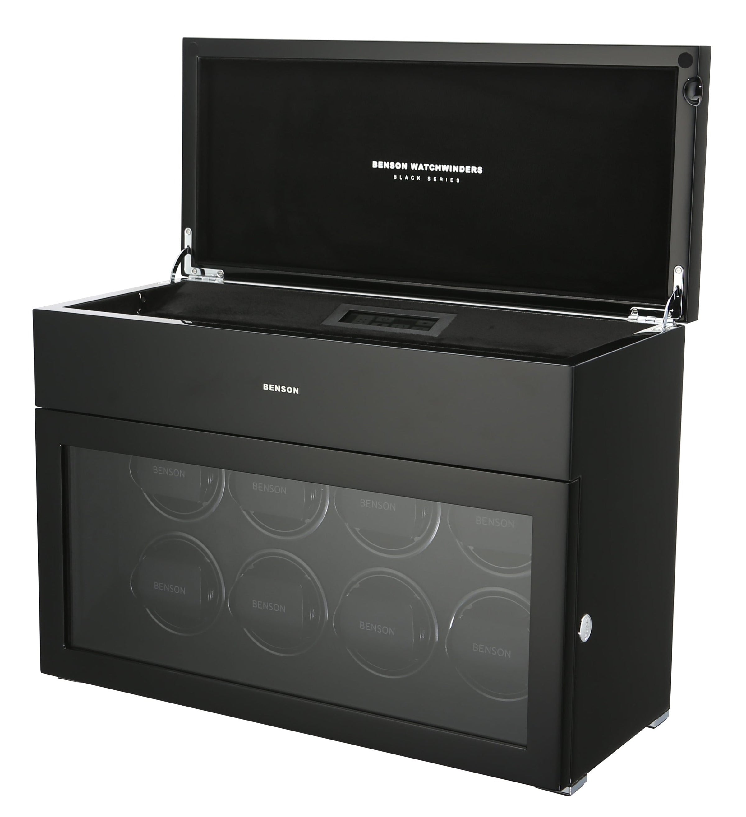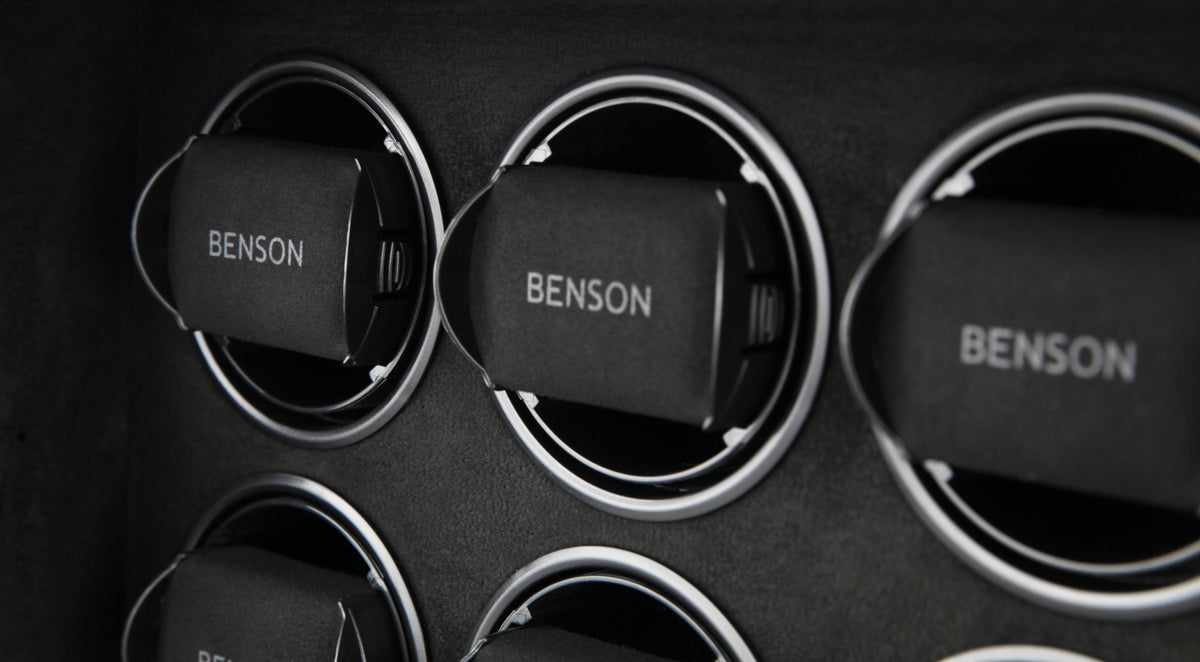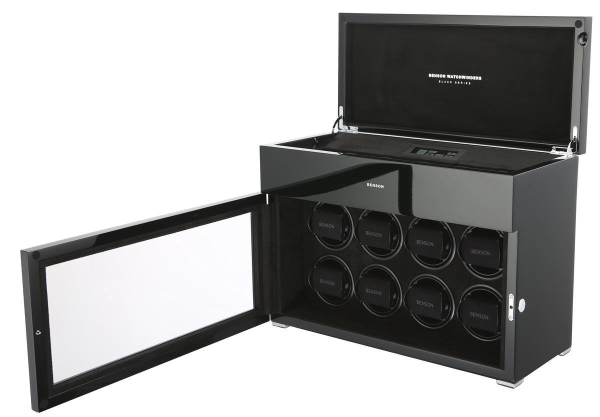 The new Benson Black Series represents the most luxurious line of watch winders Benson offers. This product combines the newest in watch winder technology with a stylish design and the highest quality finish. With extra storage for other watches, LED lighting, a soft-close cover, and an innovative touch screen, the Black Series offers both functionality and a quality design. Benson’s lacquered finish ensures a beautiful, rich color no matter which watch winder catches your fancy.