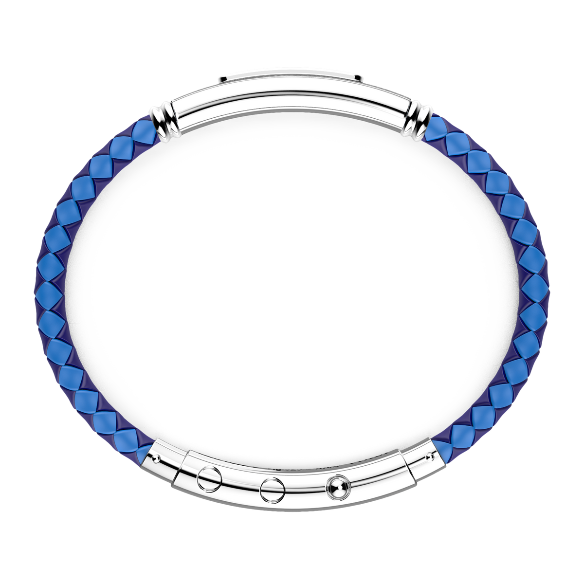 Blue Silicone Bracelet with Silver Tag & Black Stones