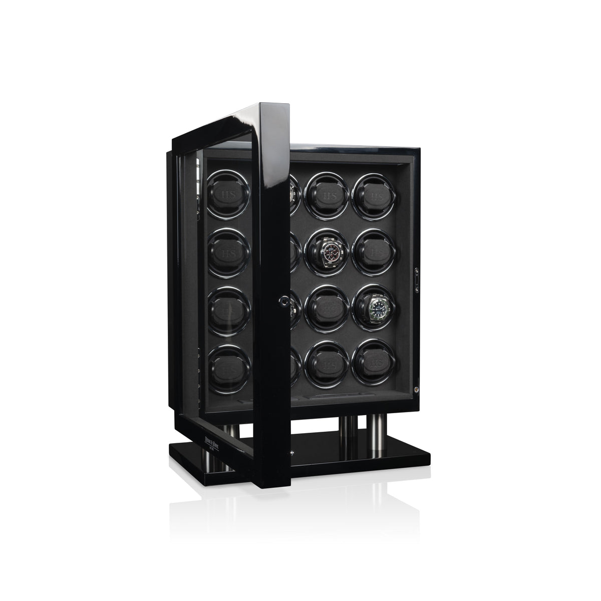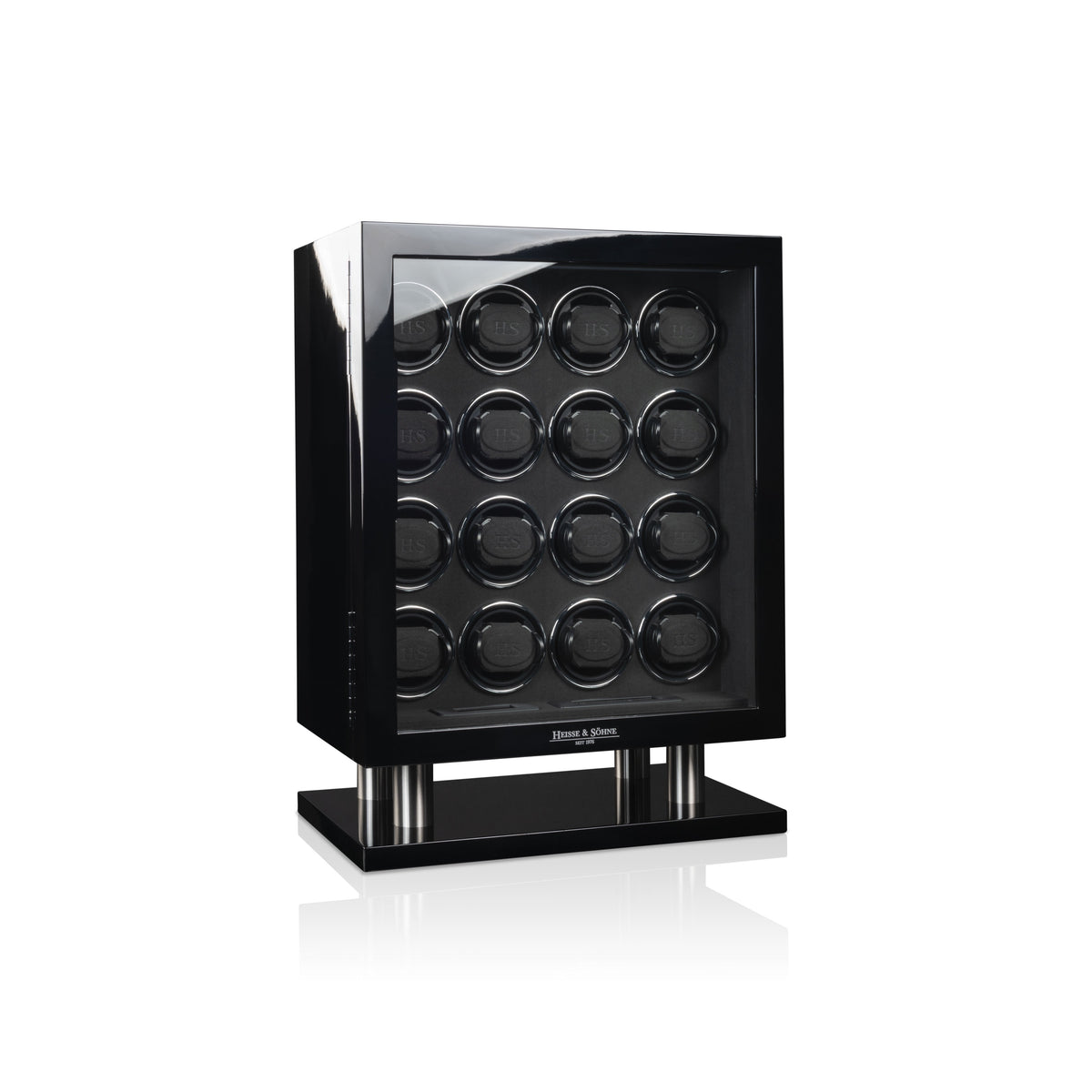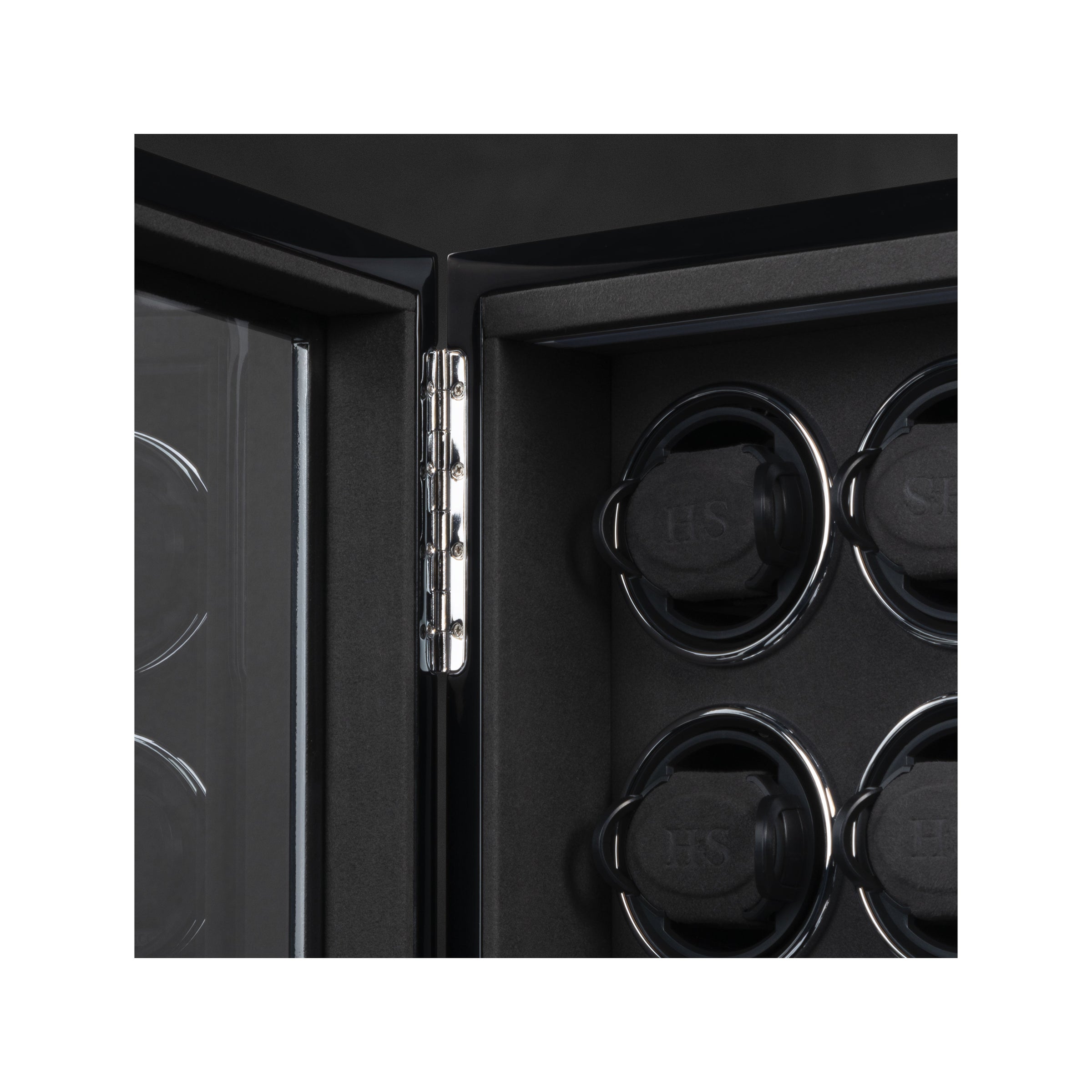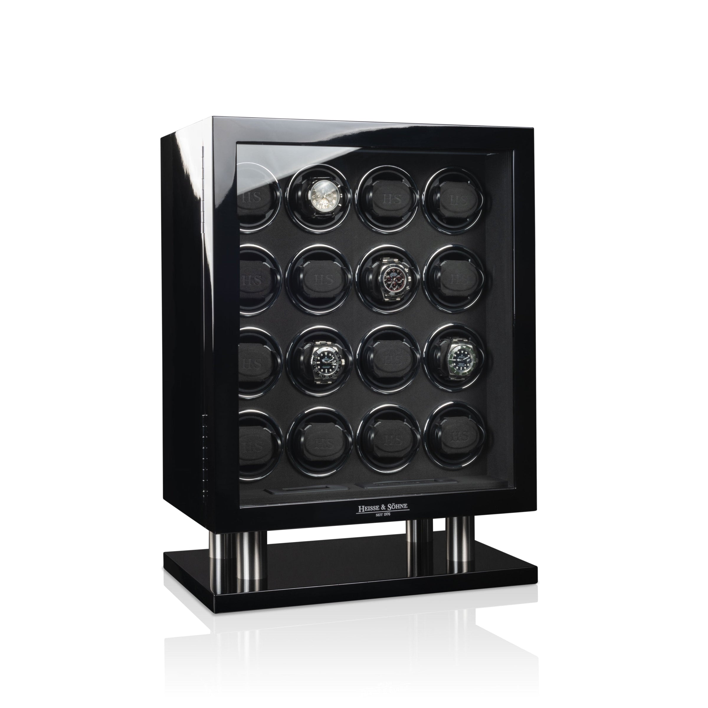 As your collection of fine automatic watches grows, the need for care, security and comfort in watch storage will grow as well. Whether as a stylish addition on a sideboard or an elegant eye-catcher on a pedestal, the collectors of the brand Heisse & Söhne cut a fine figure everywhere. The brushed and anodized aluminum applications in the base are highly expressive features of this series. The separately switchable interior lighting sets your watches perfectly in scene at any time of day or night. A lock protects the watches in the watch winder from unauthorized access.