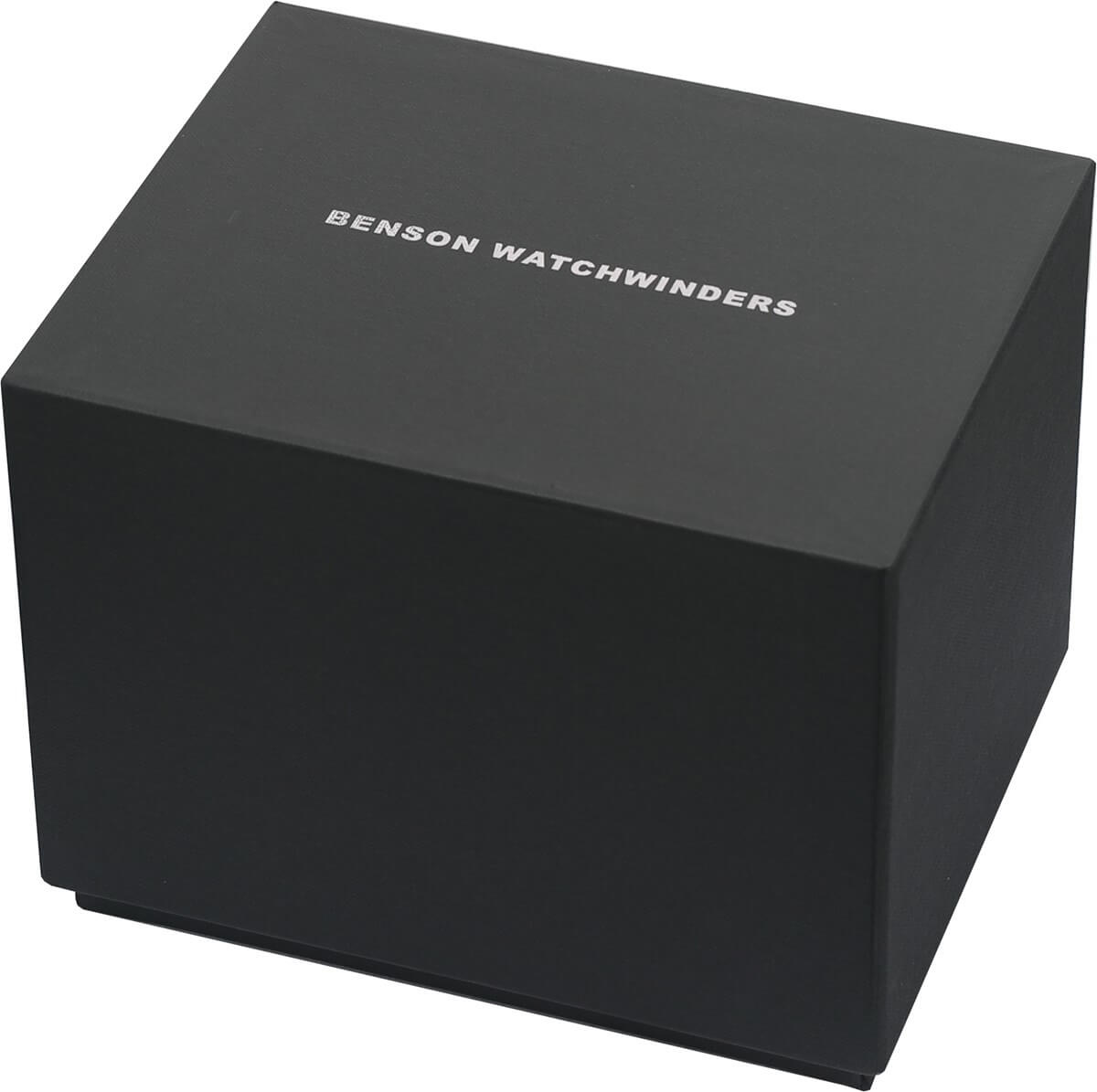 Benson proudly presents its latest generation of Compact Aluminum watch winders. This new series of watch winders has a modern design, is compact and contains excellent features. These new Benson Compact Aluminum watch winders provide any automatic watch, regardless of brand or model, with sufficient energy completely safely and easily so that the watch is immediately ready to wear. The advantages of the Benson Compact Aluminum watch winders are the excellent price/quality ratio, high functionality and beautiful finish. Each model can be fully configured in terms of direction of rotation and number of revolutions per day. In addition, an important advantage is that this Benson Compact Aluminum 1 Black watch winder functions for +- 6-9 months on one set of batteries. The flexible watch holder ensures that large but also smaller watches click into place in the watch winder for optimal safety of the watch. The special LED lighting ensures that you can also see