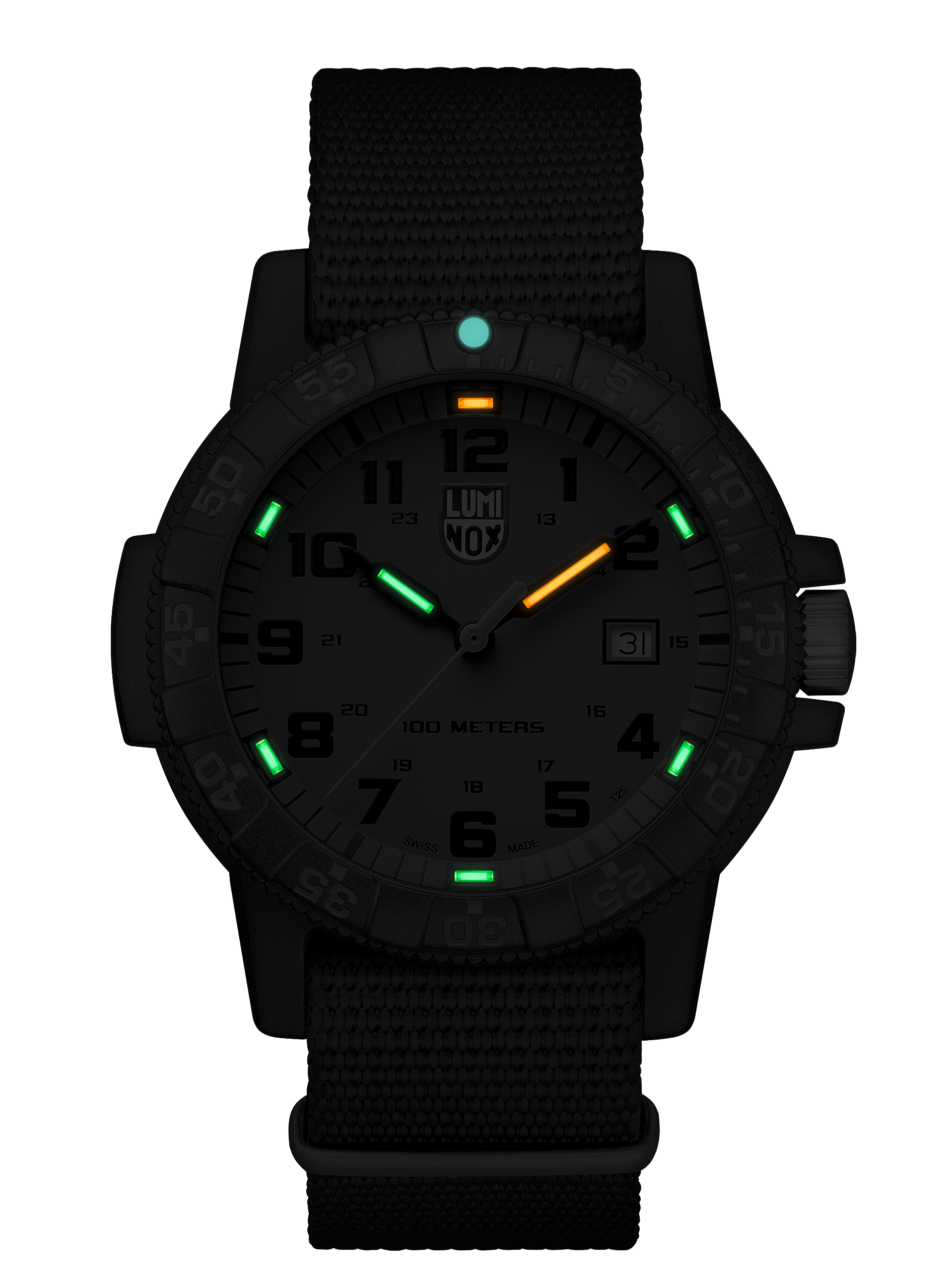 - Luminox self-powered illumination on hands and at 2, 4, 6, 8, 10, 12H