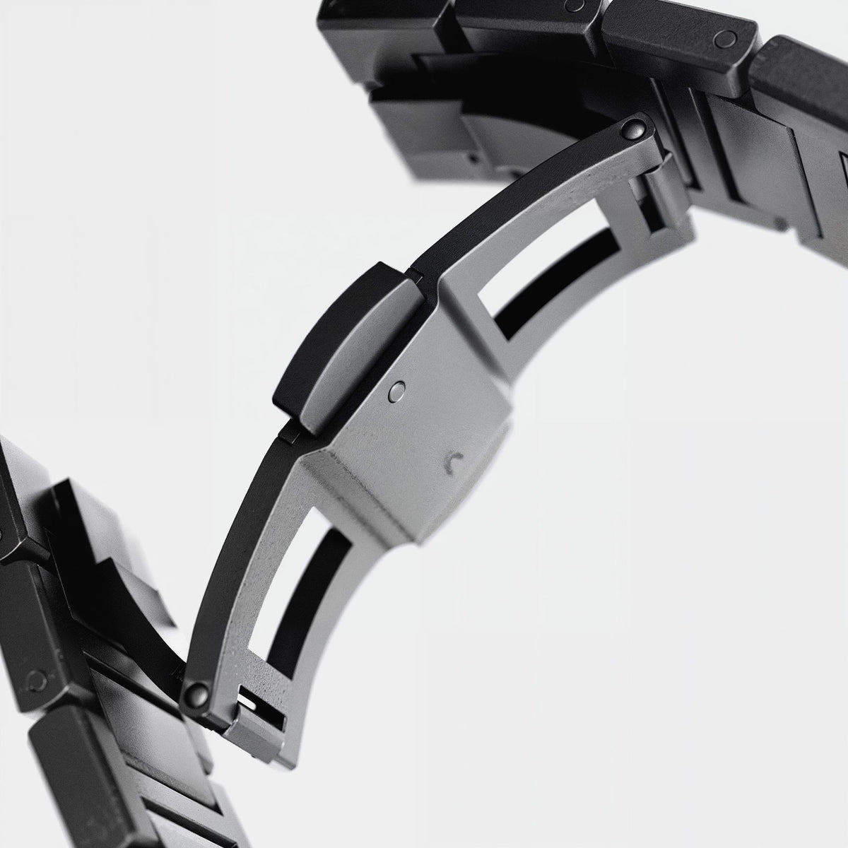 Lume infused sapphire crystal, bezel, hands and dial. Stealthy micro blasted case stainless steel case, integrated straps, chamfered crown guard, screw in crown and sapphire crystal.