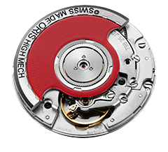 - Bracelet: Black textile strap with red leather lining and grey-PVD-plated stainless steel ‘Lift’ folding clasp
