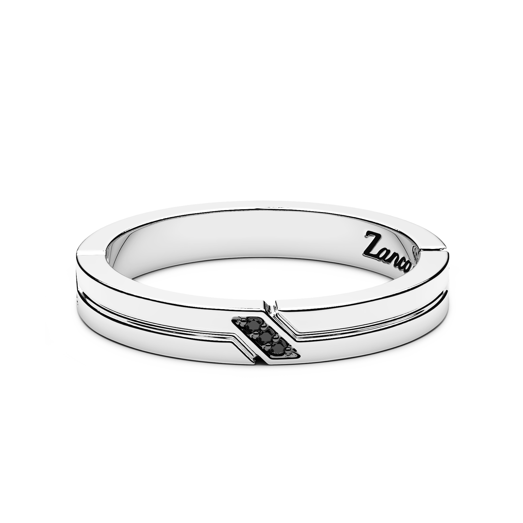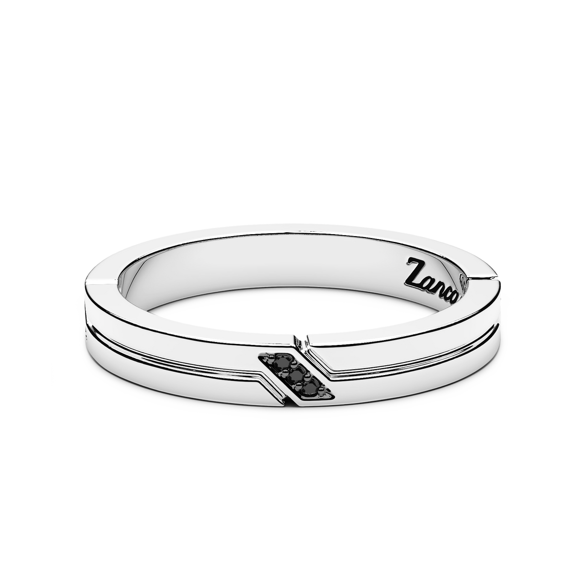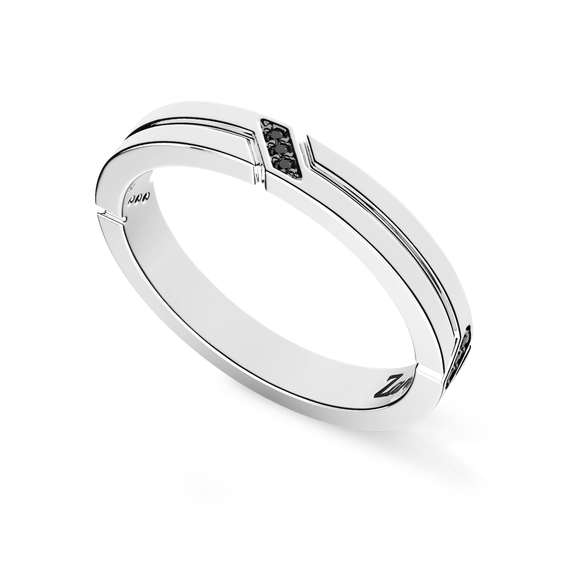 Ring with black stones set into the middle of the cut. Bold and incisive, a stunning ring with an intriguing style, essential as a daily ornament. Silver and black spinel ring. The ring is made from 925 silver.