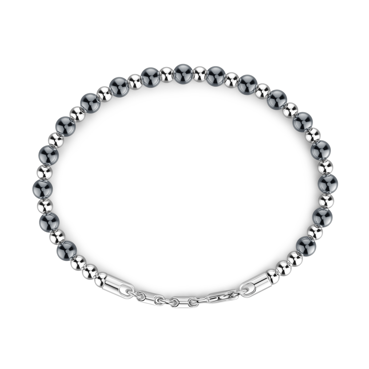 Zancan 925 silver link-only bracelet with knurled spheres and natural hard stone spheres. The soft link allows the bracelet to fit perfectly to the wrist. The bracelet's sheen is achieved through a special platinum plating process. A bracelet with a refined, sophisticated design, suited for all situations. The piece is part of the Atomosphere collection, characterized by perfect spheres, symbols of power and energy. The lobster clasp closure makes for a perfect fit.
