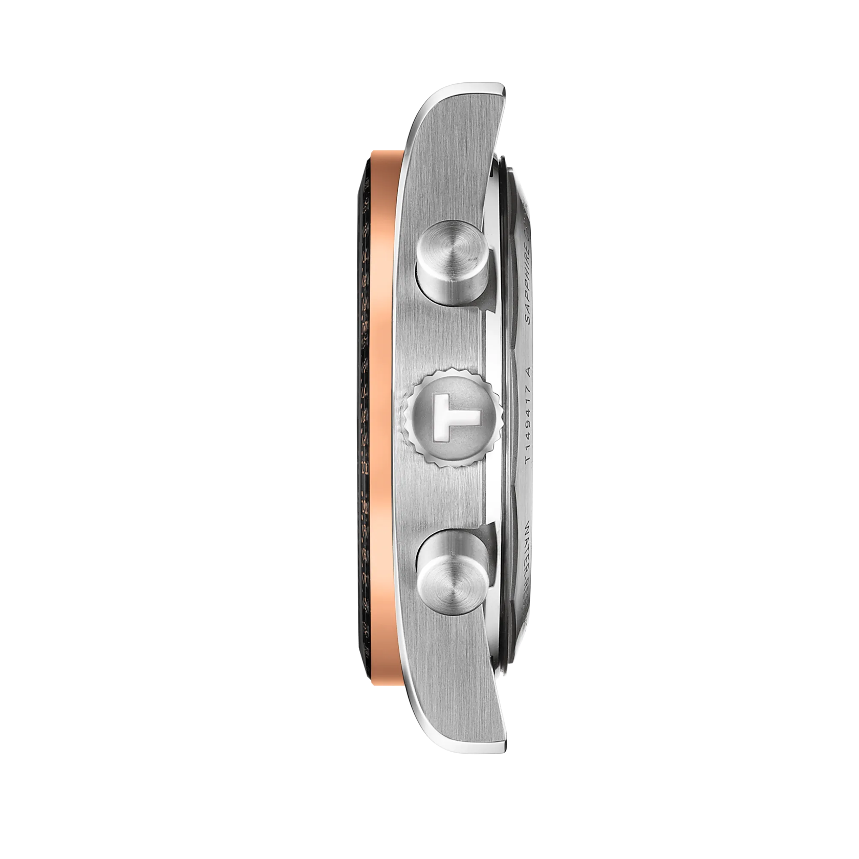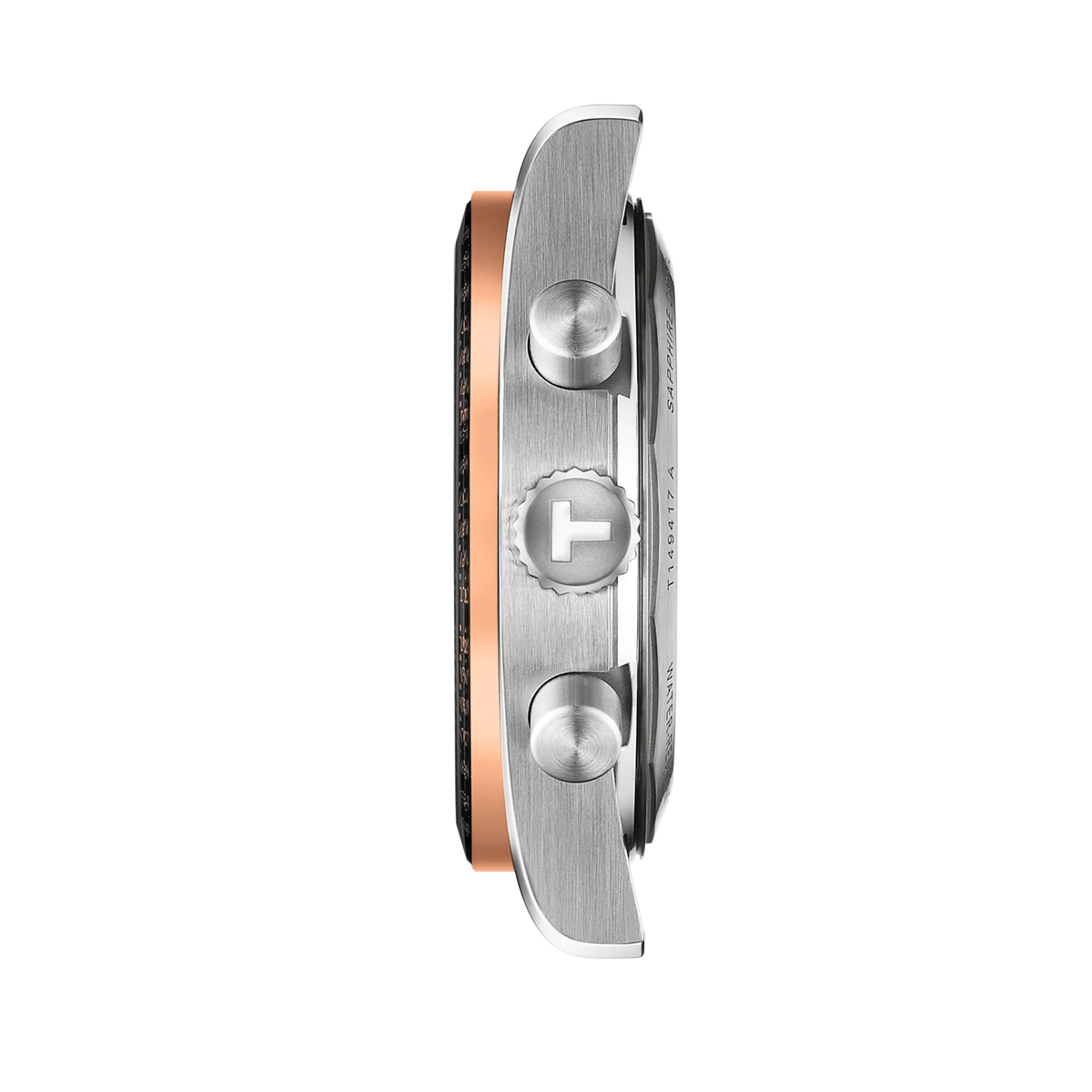This sophisticated chronograph powered by a Swiss quartz movement and a tachymeter scale ensures unparalleled accuracy in timekeeping. The baton hands, coated with Super-LumiNova®, offer a clear and direct view of the dial, even in the dark. The smooth lines of the case and polished finishings testify its robustness.