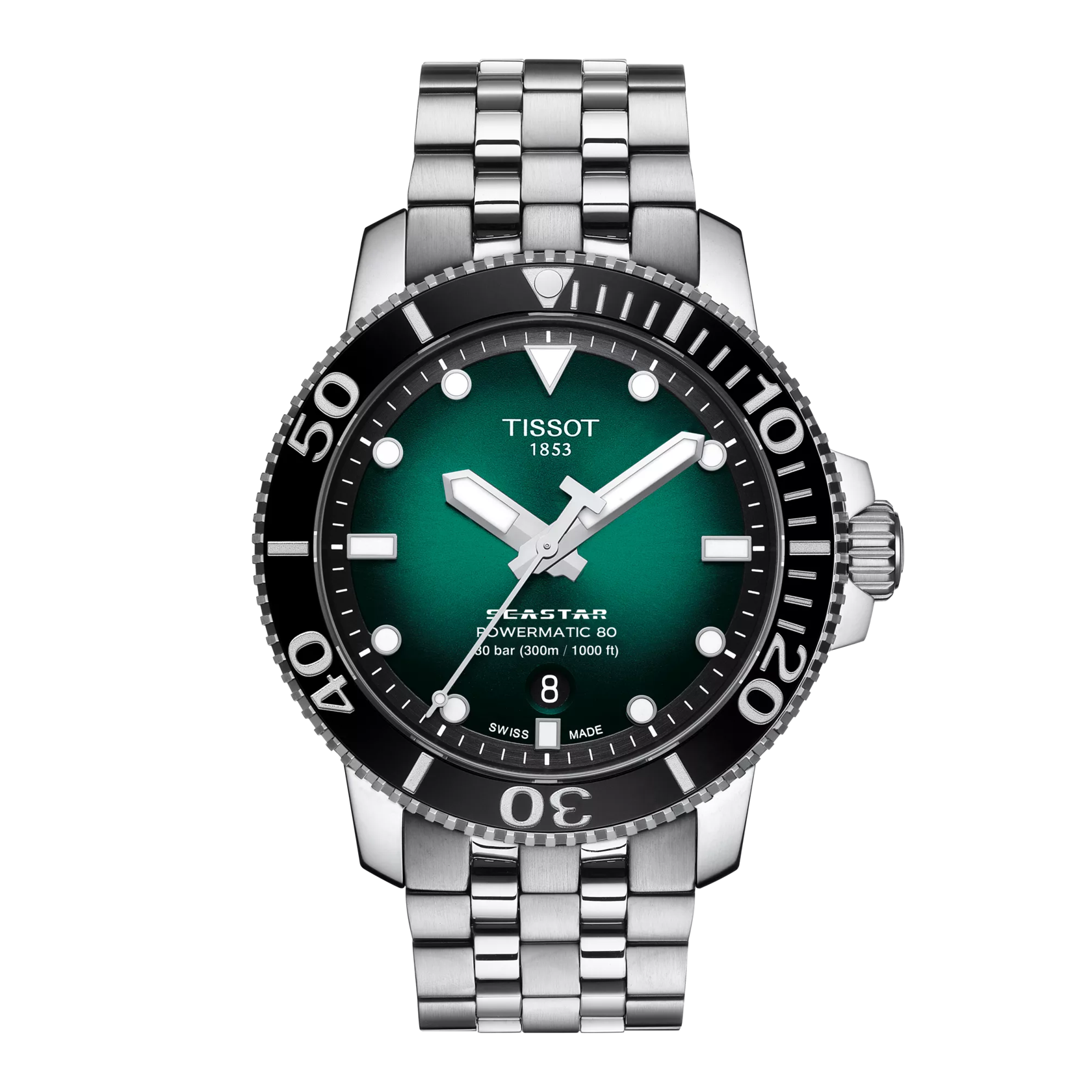 This collection has been created for real water sports lovers. The Tissot Seastar 1000 is the ultimate watersport watch, with its high water-resistance up to a pressure of 30 bar (300 m/1000 ft), screw-down crown and caseback as well as its unidirectional ceramic bezel. It is fitted with an automatic movement.