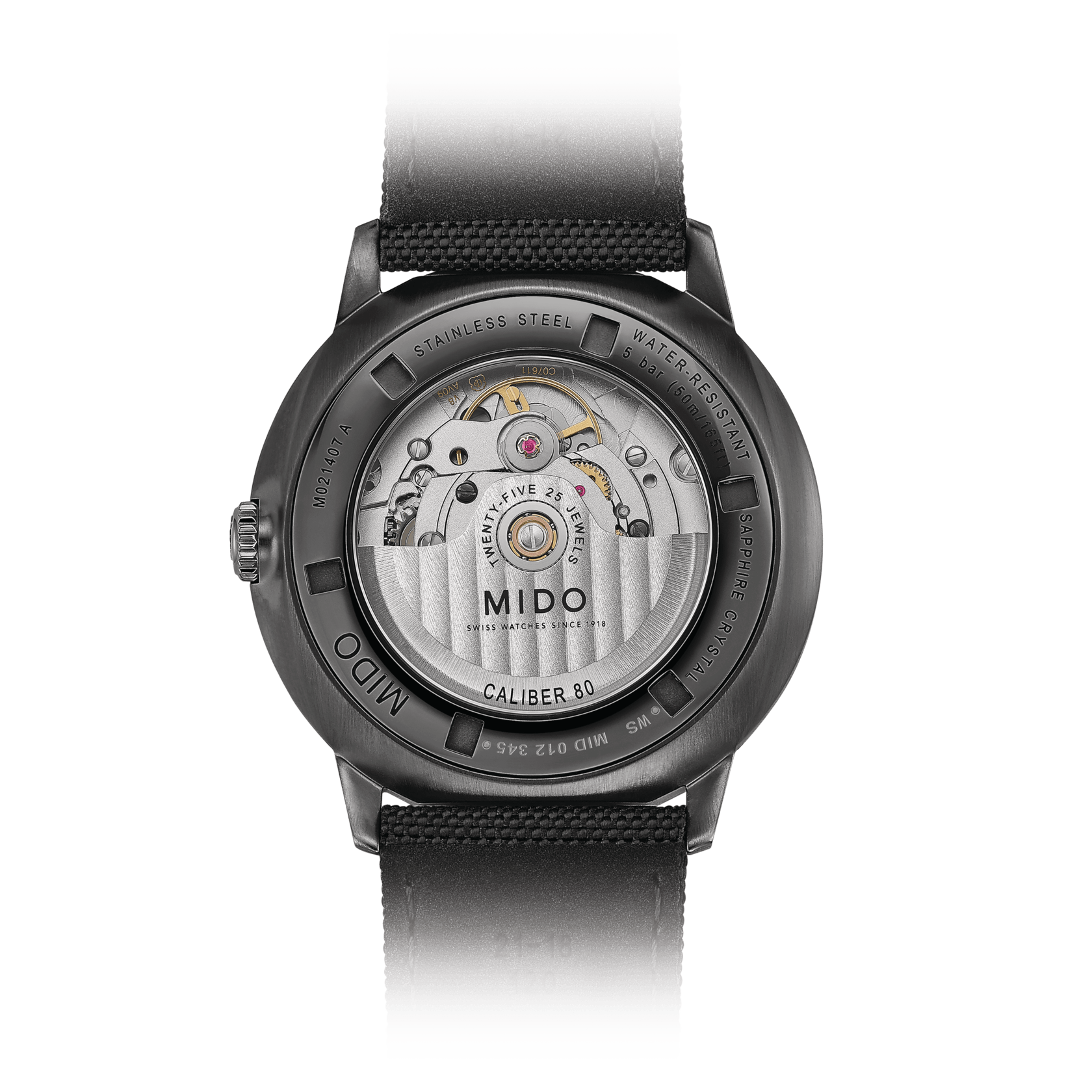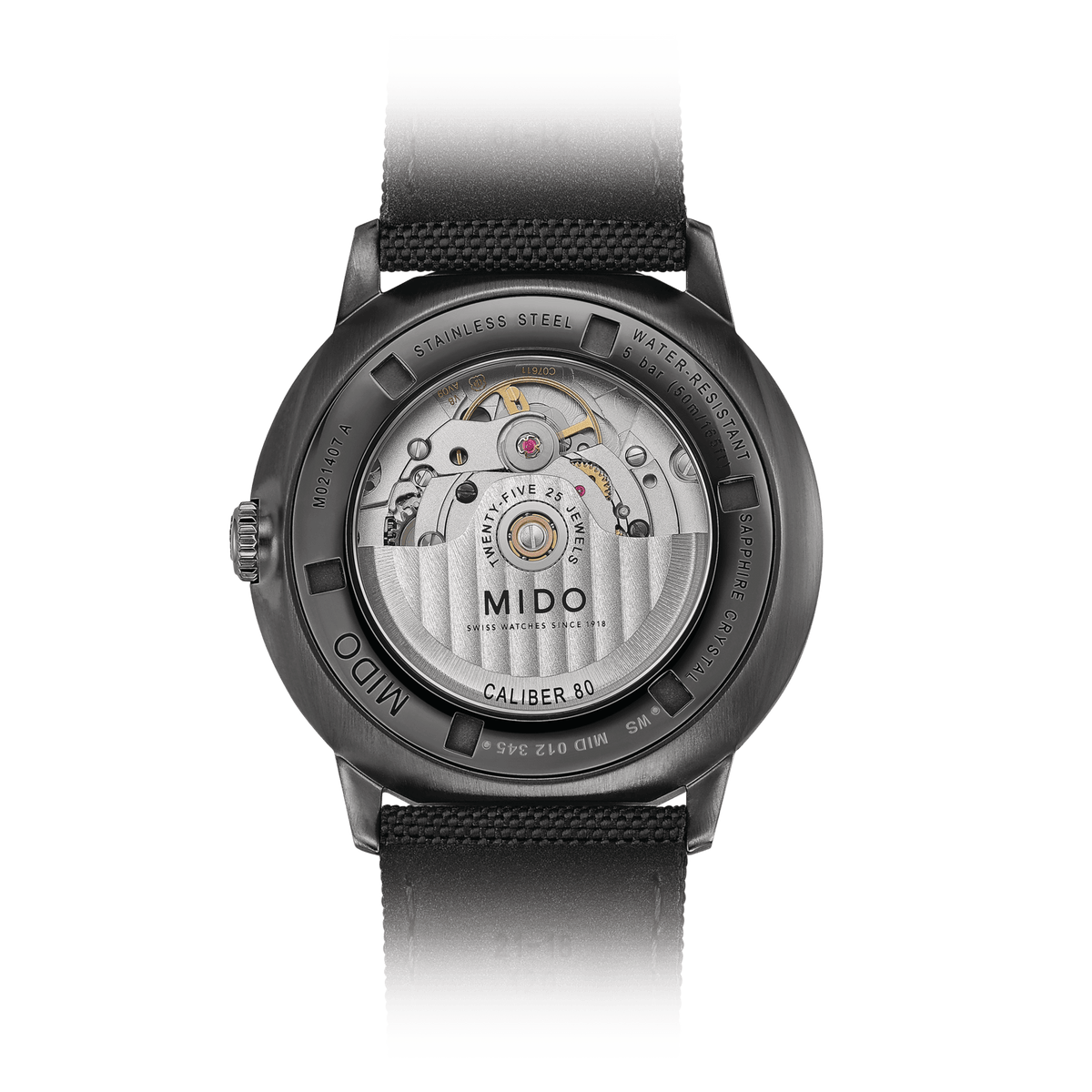 With the Commander Gradient, watchmaking mechanics become visible thanks to a transparent acrylic dial – a first in this iconic collection. As such, the components of the Caliber 80 can be admired on the dial side as well as on the rear, thanks to a transparent case back. Adorned with an original gradated smoky effect, the dial becomes increasingly opaque around the edges while the date at 3 o’clock stands out perfectly against the aperture’s white background.