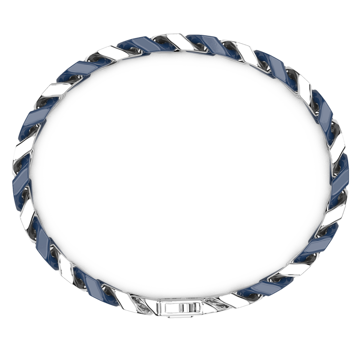 Zancan 925 silver curb chain bracelet. This unique piece is composed of silver links alternating with blue ceramic links. A piece made using a unique Zancan technique that makes it one of a kind. The bracelet is part of the Cubane collection, inspired by the underground hip-hop scene. The piece is completely crafted by hand in Italy and weighs 41.00 g.