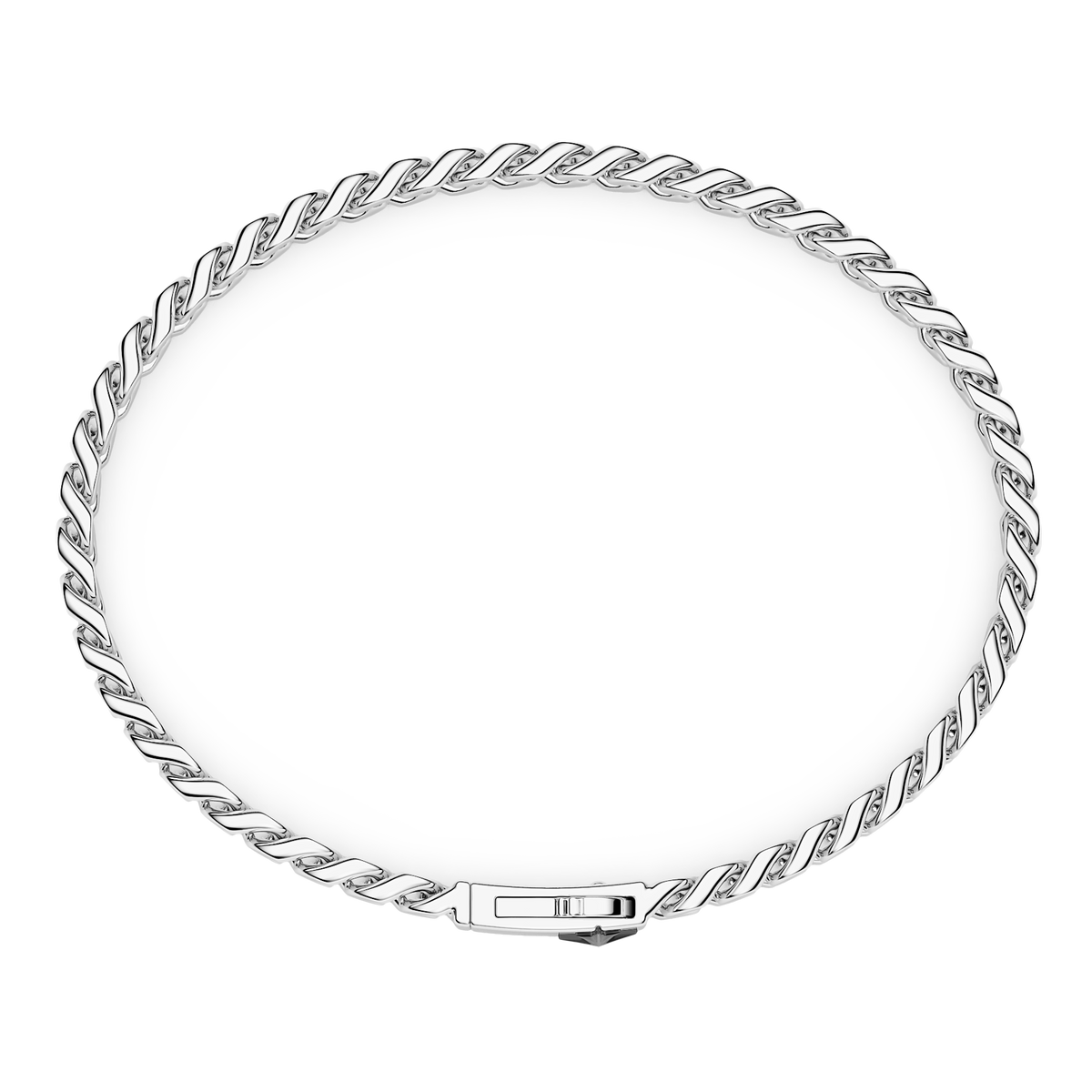 Zancan 925 silver curb chain bracelet. This polished finish soft link has a snap closure featuring the Zancan wind rose. The unique coloring is achieved with a white rhodium-plating treatment for a durable look. A piece made using a unique Zancan technique that makes it one of a kind. The bracelet is part of the Cubane collection, inspired by the underground hip-hop scene. The piece is completely crafted by hand in Italy and weighs 17.00 g.