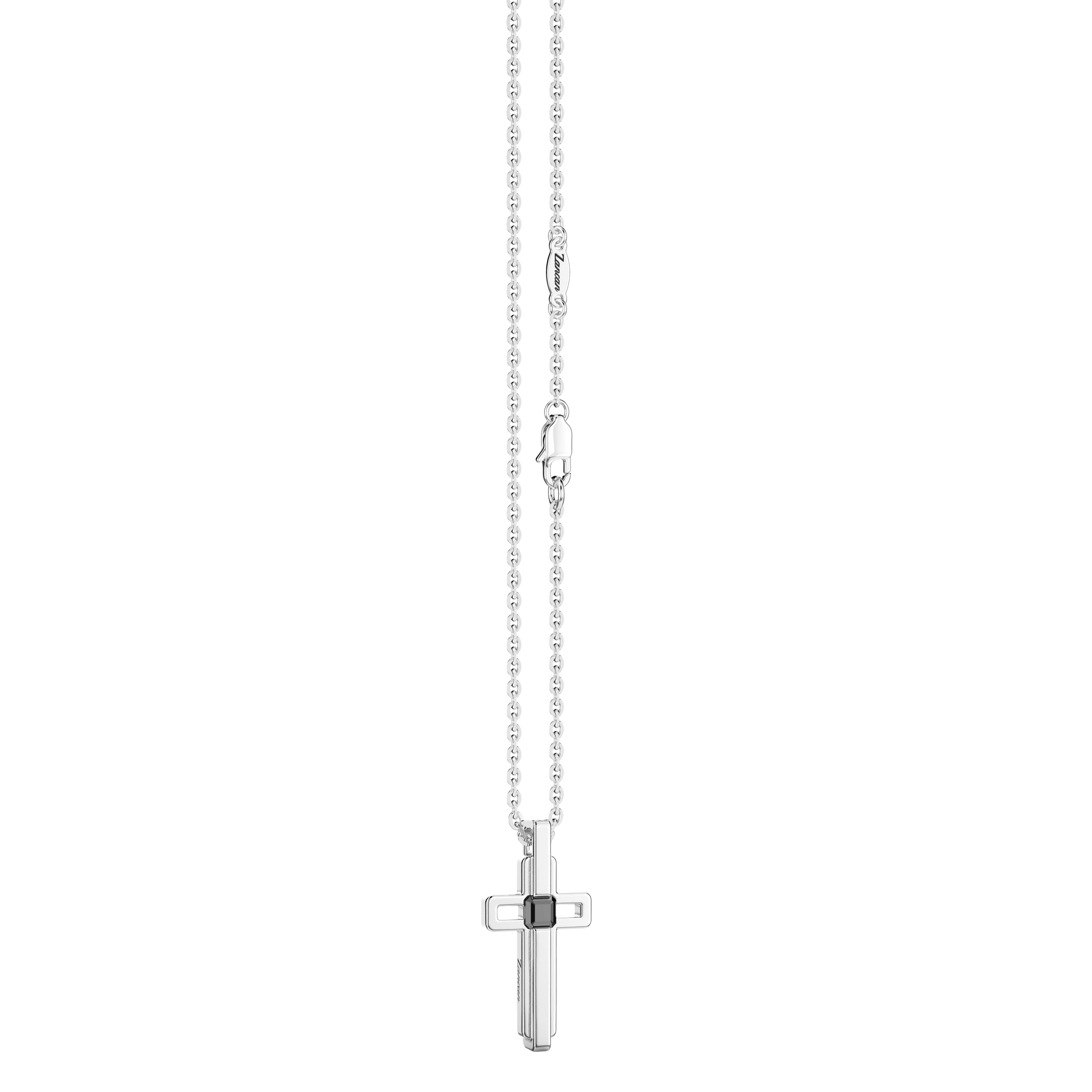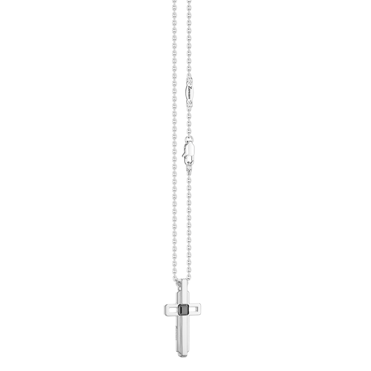 Zancan 316L steel necklace. The necklace includes a cross and inset black stone. The piece is part of the Hi-Teck collection, featuring an alternative, highly refined design. The perfect accessory for every occasion.