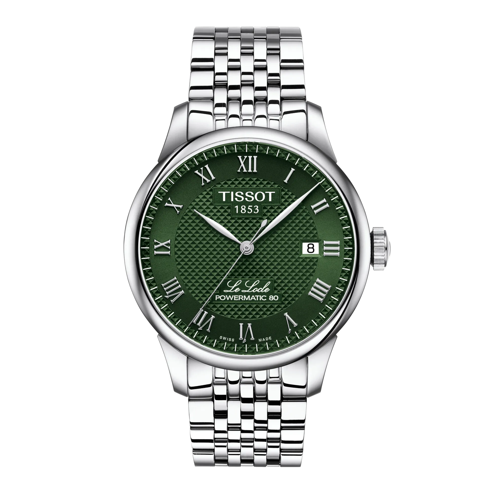 The Le Locle collection first debuted in 2003 to commemorate the 150th years of the brand. This timepiece is a piece of history, embodying the spirit of innovation that has defined Tissot for over a century. This model features a green dial and is equipped with interchangeable quick-release bracelets. All watches have the beautiful clous de Paris “guilloche” dial in the form of small pyramids a detail that really makes the difference. The interplay of polished and brushed finishes on the links creates a captivating visual rhythm, catching the light with every movement. This watch embodies the charm of Swiss heritage, with the name "Le Locle," inscribed in italics on the face, adds a sophisticated touch, inviting you to celebrate your roots. The latest model features cutting-edge Nivachron Spring Balance technology, which significantly mitigates the effects of magnetic fields while also being resistant to shocks, aging, and temperature variations. This gentlemen’s version is further enhanced by the COSC (Contrôle Officiel Suisse des Chronomètres), a distinction awarded to only a select few Swiss watches each year, underscoring the watch’s exceptional accuracy and quality.