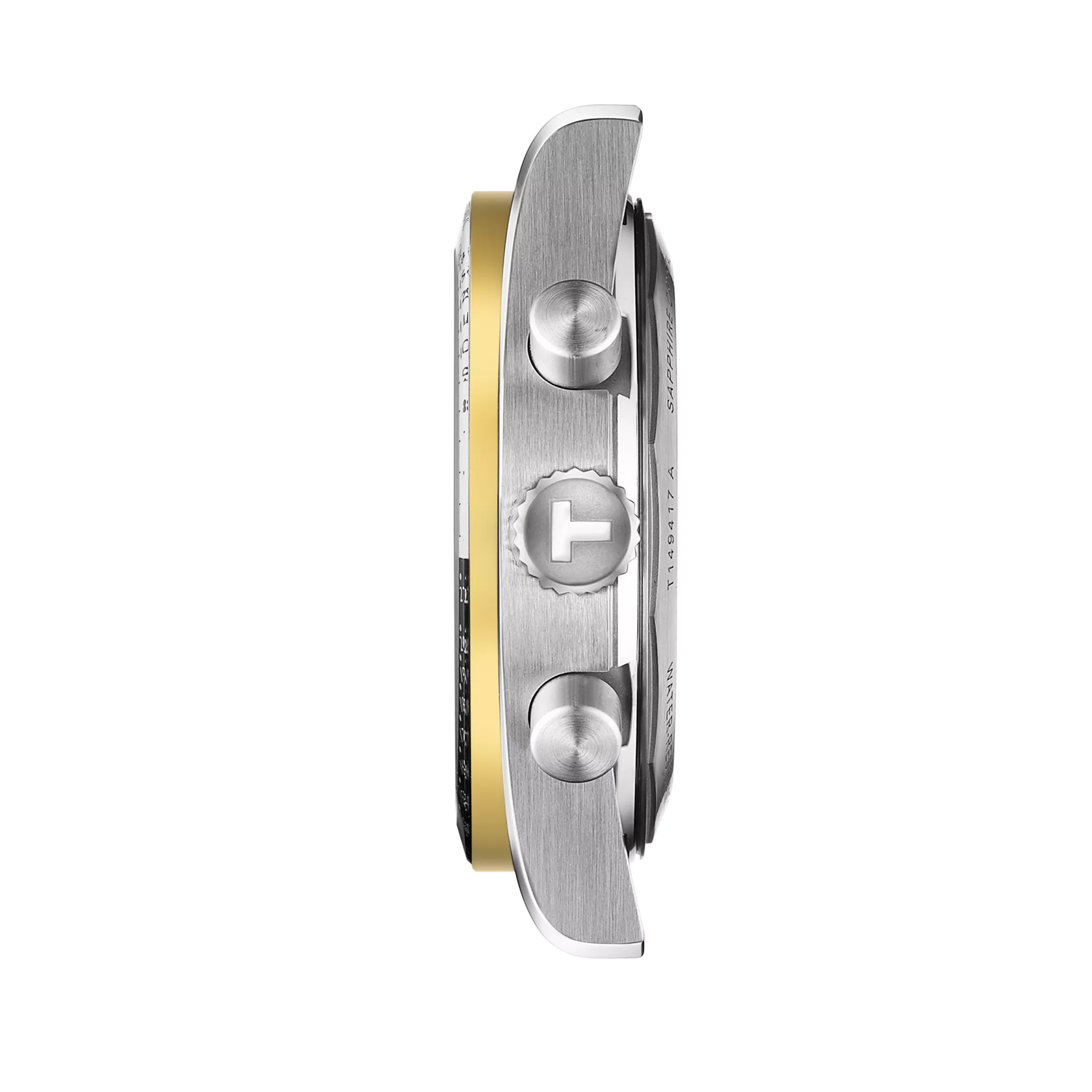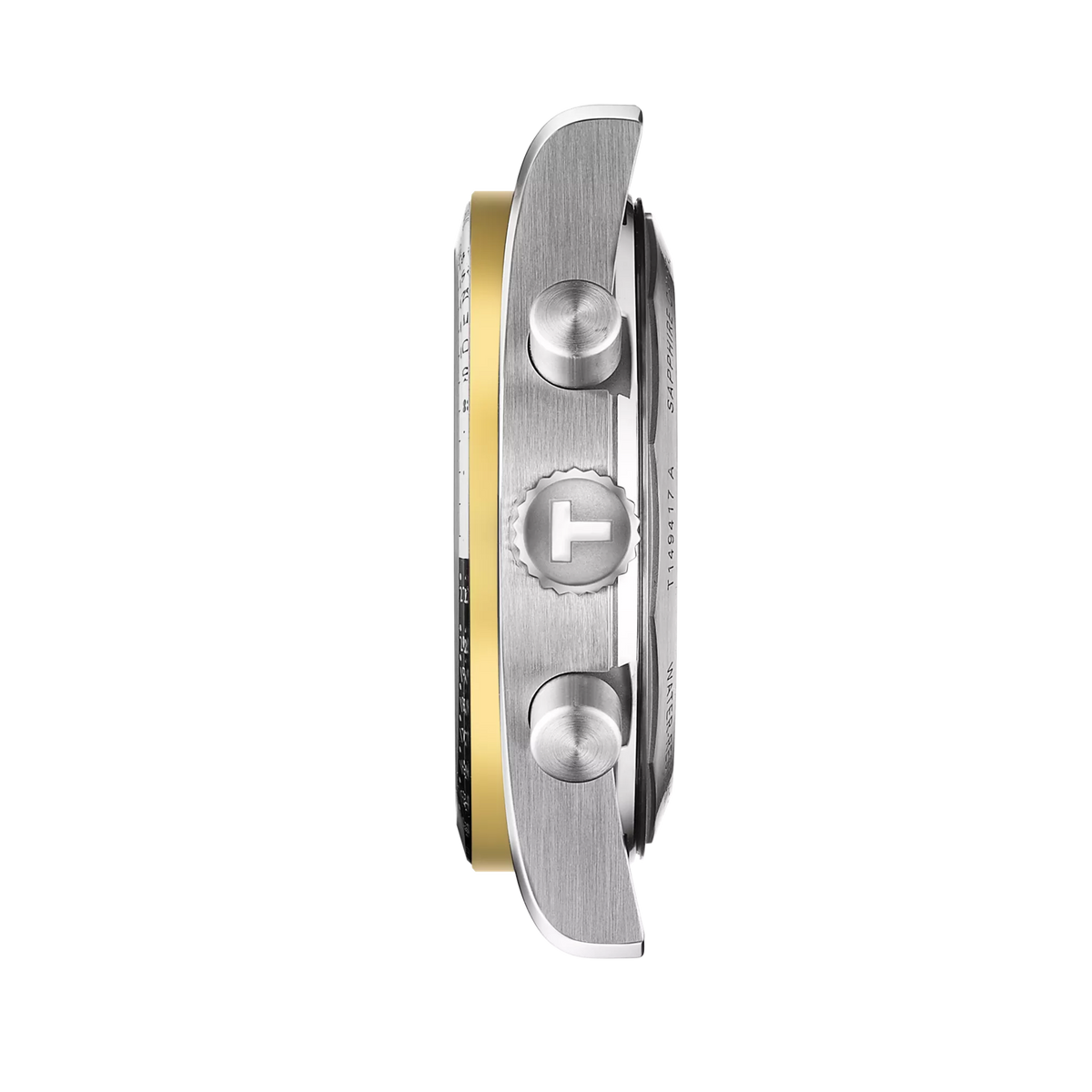 This sophisticated chronograph powered by a Swiss quartz movement and a tachymeter scale ensures unparalleled accuracy in timekeeping. The baton hands, coated with Super-LumiNova®, offer a clear and direct view of the dial, even in the dark. The smooth lines of the case and polished finishings testify its robustness.