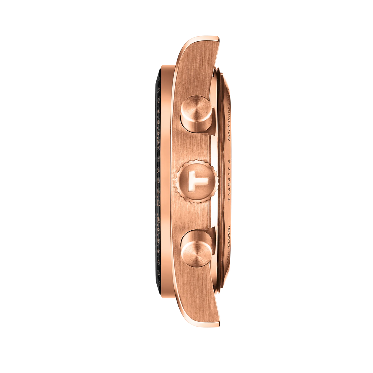 First introduced in the 1960s, the PR516 was inspired by the high-speed world of car racing. As Tissot expands the PR516 line, it continues to fuel the spirit of those who seek a timepiece as relentless as their pursuits—driving them to face challenges head-on, just like the heroes who wear it. The PR516 Quartz Chronograph takes its place at the forefront, with a bold black dial and striking PVD rose gold accents. This full PVD rose gold timepiece keeps you in sync with life’s rhythm, ensuring you maintain momentum toward victory.