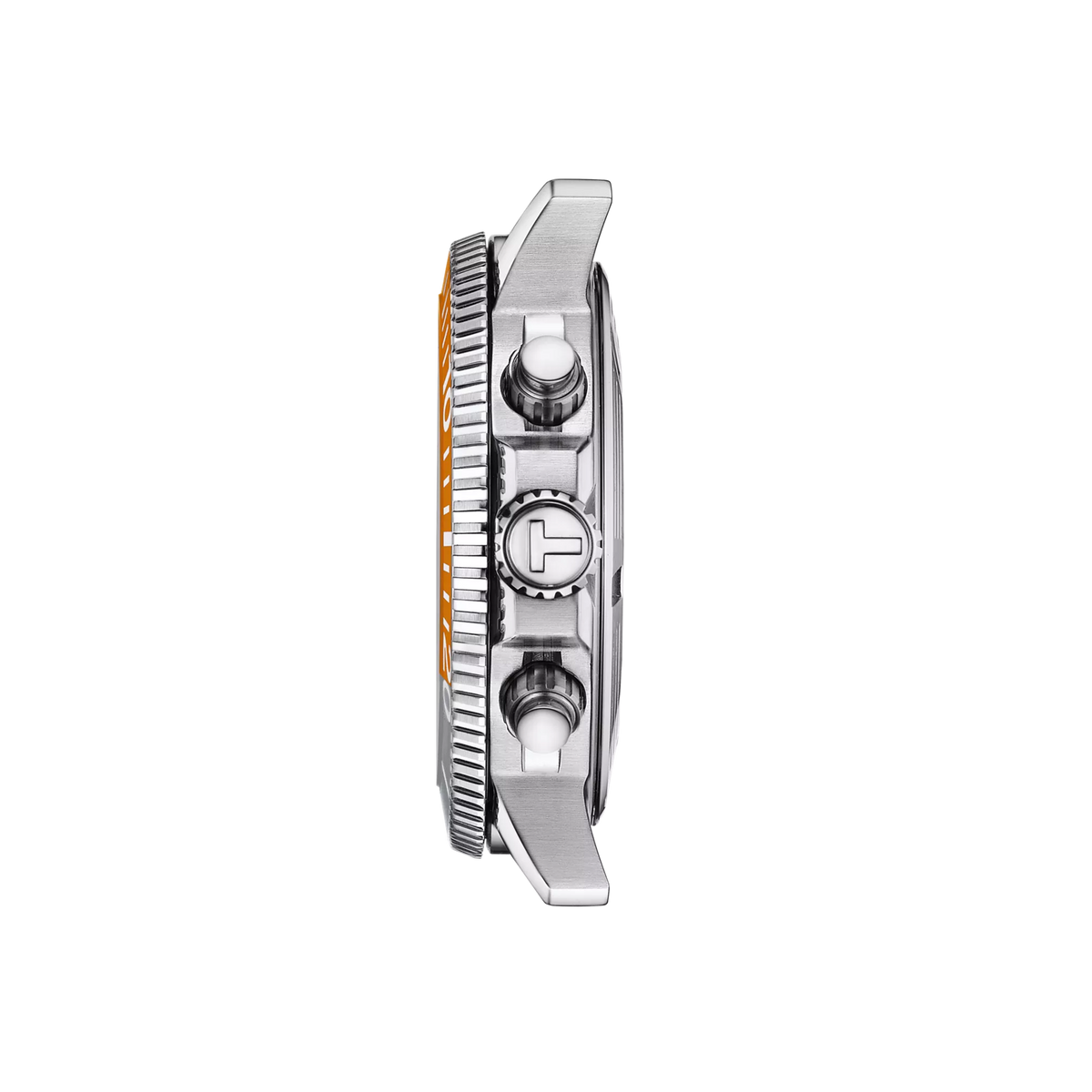 The ultimate sophistication in diving equipment, both aesthetically and technically, the Tissot Seastar 1000 Chronograph embodies style and performance without compromise. Perfectly reliable up to a pressure of 30 bar (300m), it is proof that an underwater sports watch and a chronograph can be reconciled in one object. The diving theme is omnipresent with elements such as a unidirectional aluminum bezel, luminescent hands and indexes. Finally, the Tissot Seastar 1000 collection offers a multitude of choices of compatible straps.