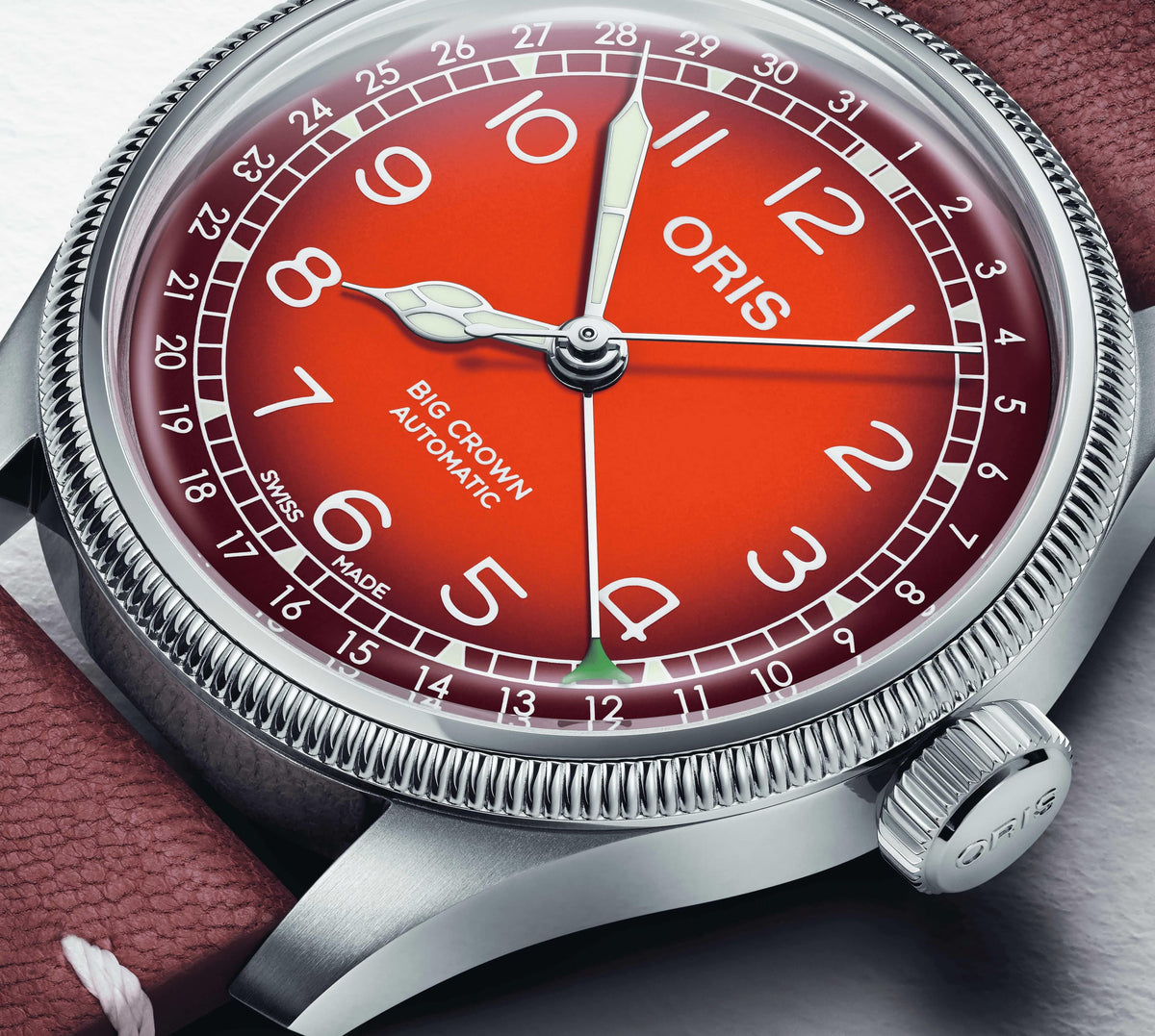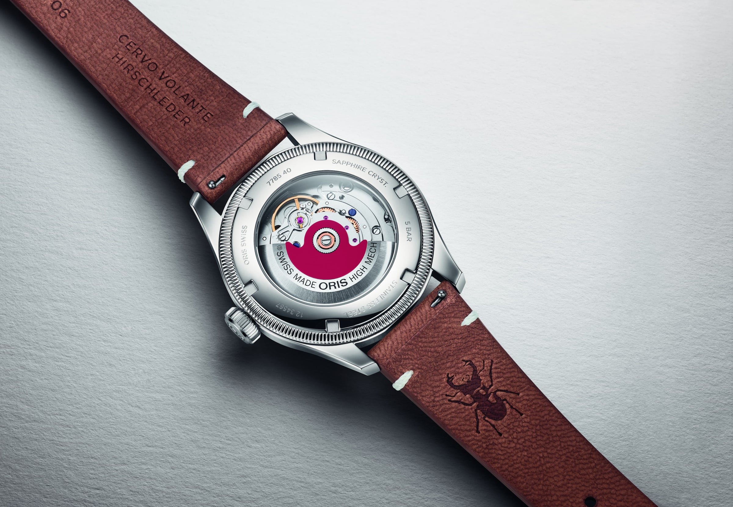 Oris returns to the Alps with the Oris x Cervo Volante, featuring a burnt maple gradient dial and a mahogany brown Cervo Volante sustainable deer leather strap. This collaboration celebrates sustainability and craftsmanship, with Cervo Volante turning waste deer skins into beautiful, natural leather products. The watch is based on the iconic Big Crown Pointer Date and comes with a matching Cervo Volante travel pouch. Inside, it is powered by the Swiss Made automatic Calibre 754, offering the signature pointer date hand tipped in forest green.
