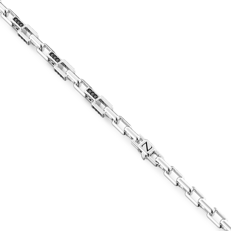 Silver Necklace with Tag Pendant Studded with Black Stones