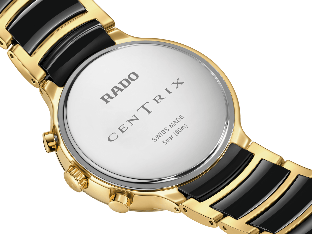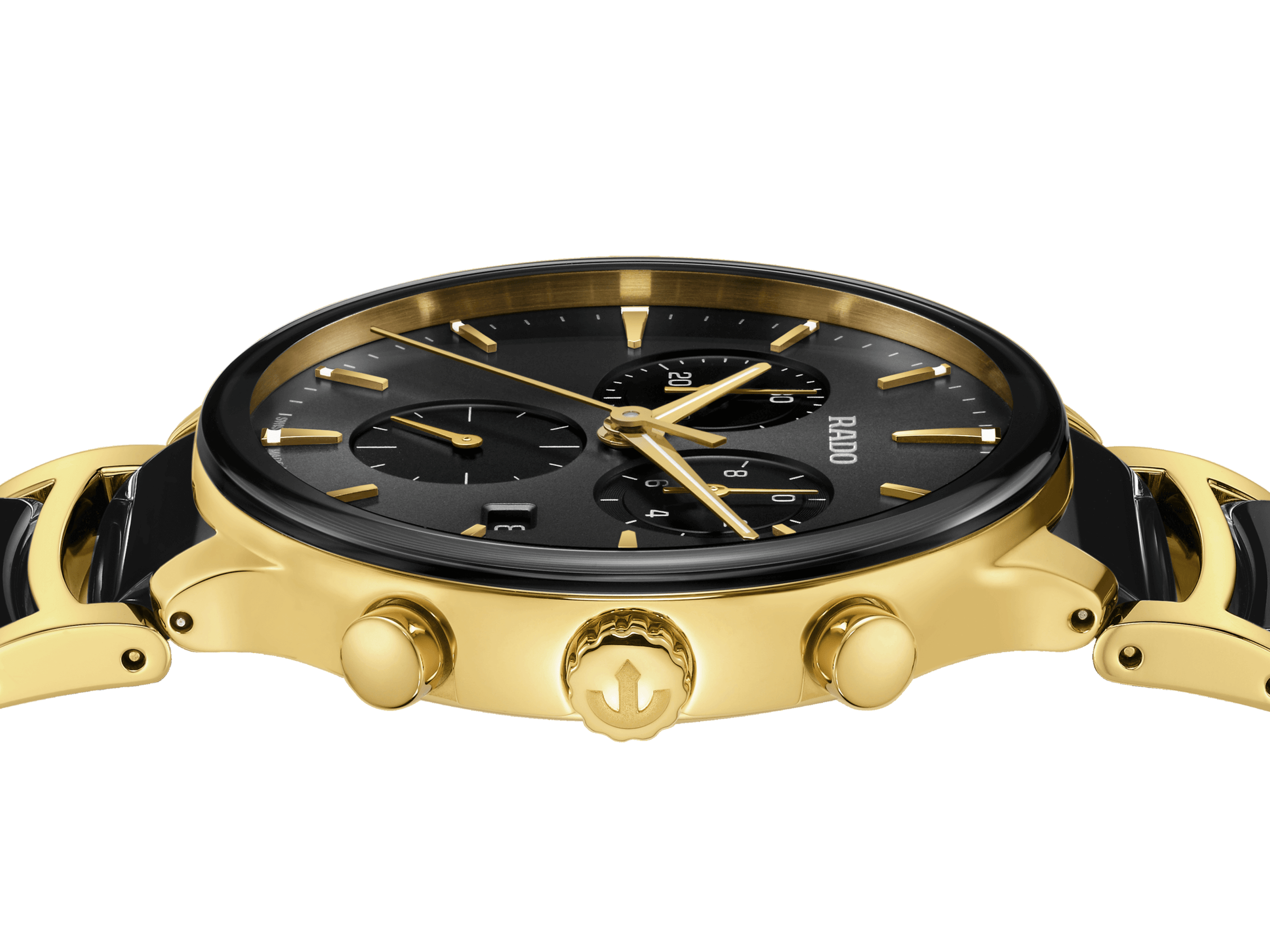 Experience the harmonious blend of artistic expression and refined design with the Centrix Chronograph. Crafted in stainless steel and treated to a yellow gold-coloured PVD coating, the 41 mm case is crowned with a curved sapphire crystal with anti-reflective coating on both sides, ensuring impeccable readability. Beating at its heart, the Calibre R312 quartz chronograph sets a new standard of precision. Equipped with 22 jewels and a six-hand configuration, this movement integrates Precidrive and Heavydrive technologies to ensure unwavering accuracy of +/- 10 seconds per year.