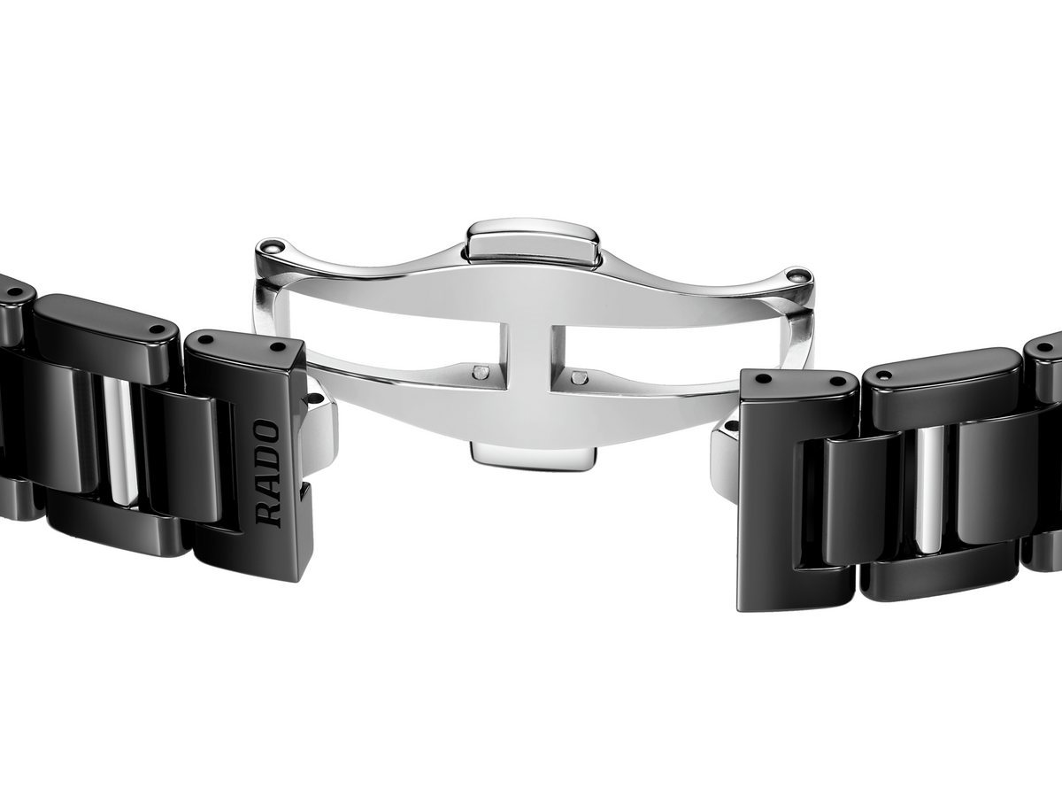 LaCoupole stands as a tribute to the icons of yesterday, redefined for today’s sophisticated wearer. An expression of refined glamour, engineered with the precision and innovation only Rado can offer. Its 31 mm monobloc case in polished black high-tech ceramic is crowned by a domed sapphire crystal, elevated by a black & silver coloured metallised border. The case is water-resistant to 5 bar (50 metres), uniting everyday resilience with enduring elegance.