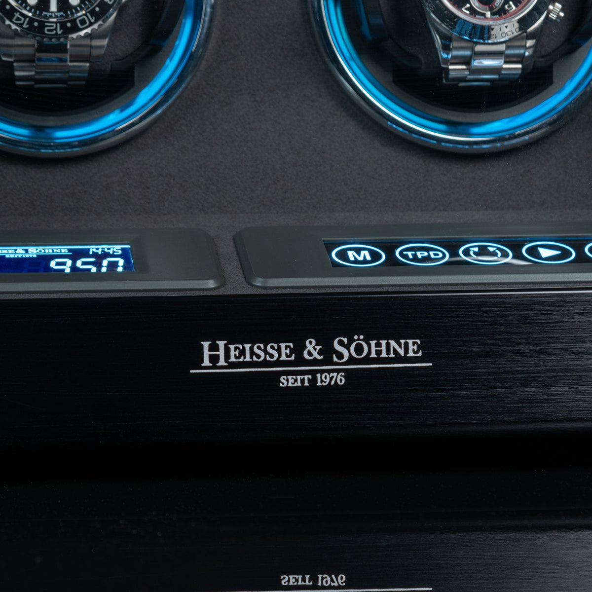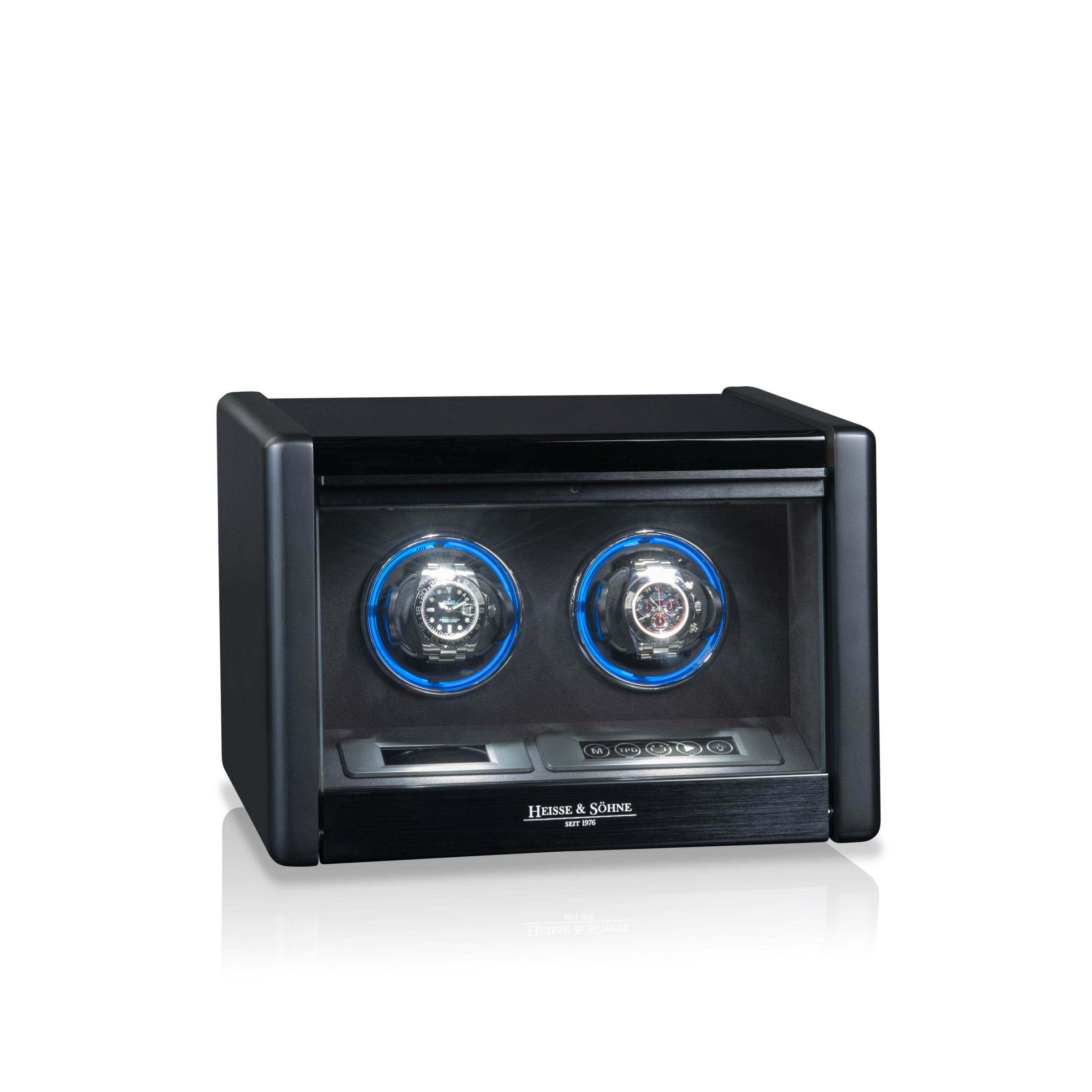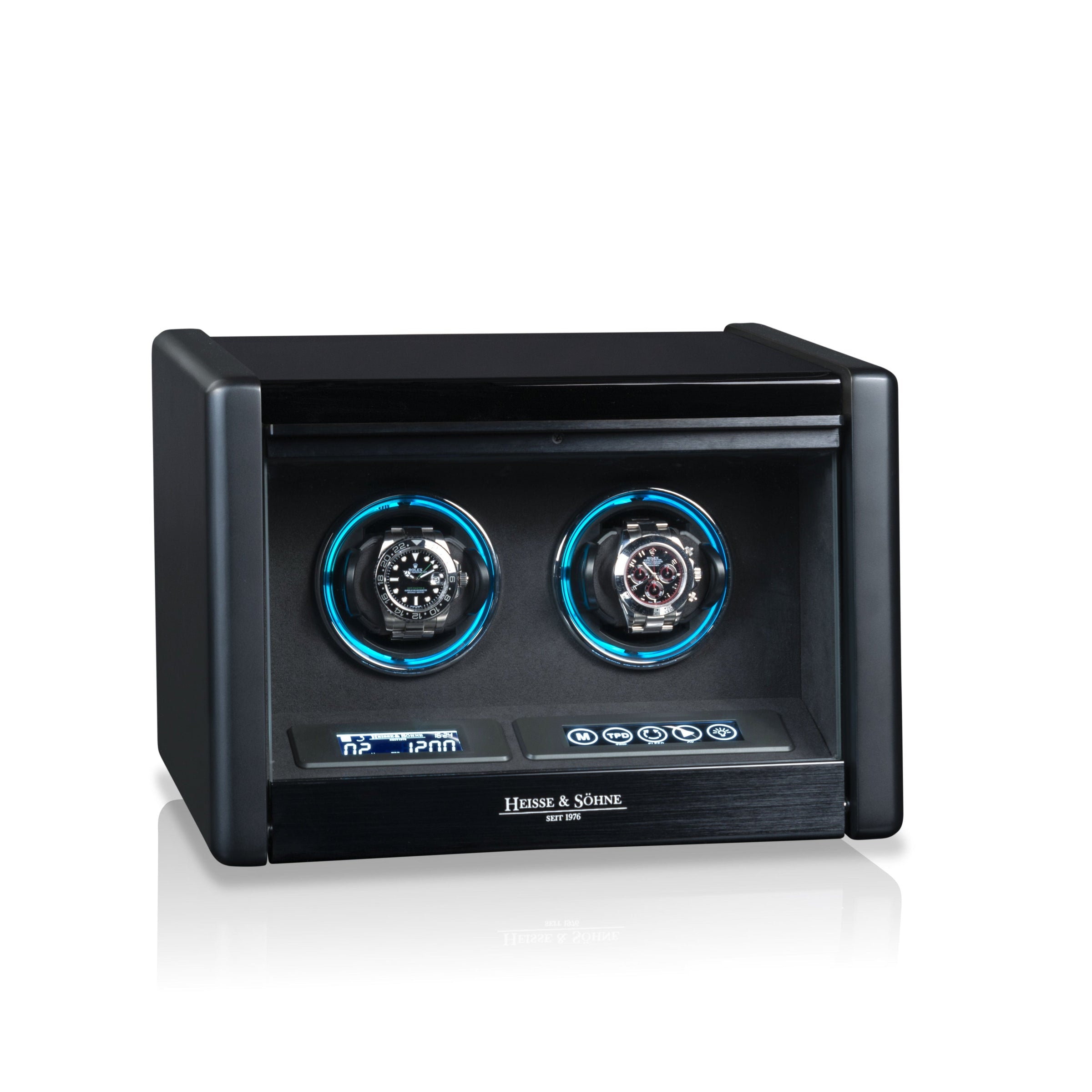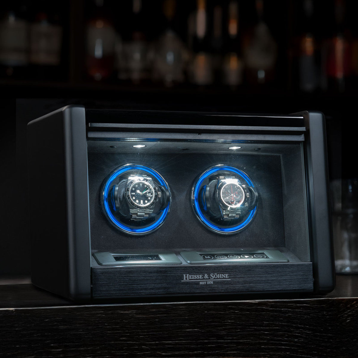 The Madrid series boasts a striking trapezoidal shape, artfully crafted from fine woods and framed by satin accents. One highlight is the H&S Motion-Light, which offers selectable colors to bathe the watches in a fascinating light. The combination of design and lighting showcases the watches in an impressive way.
