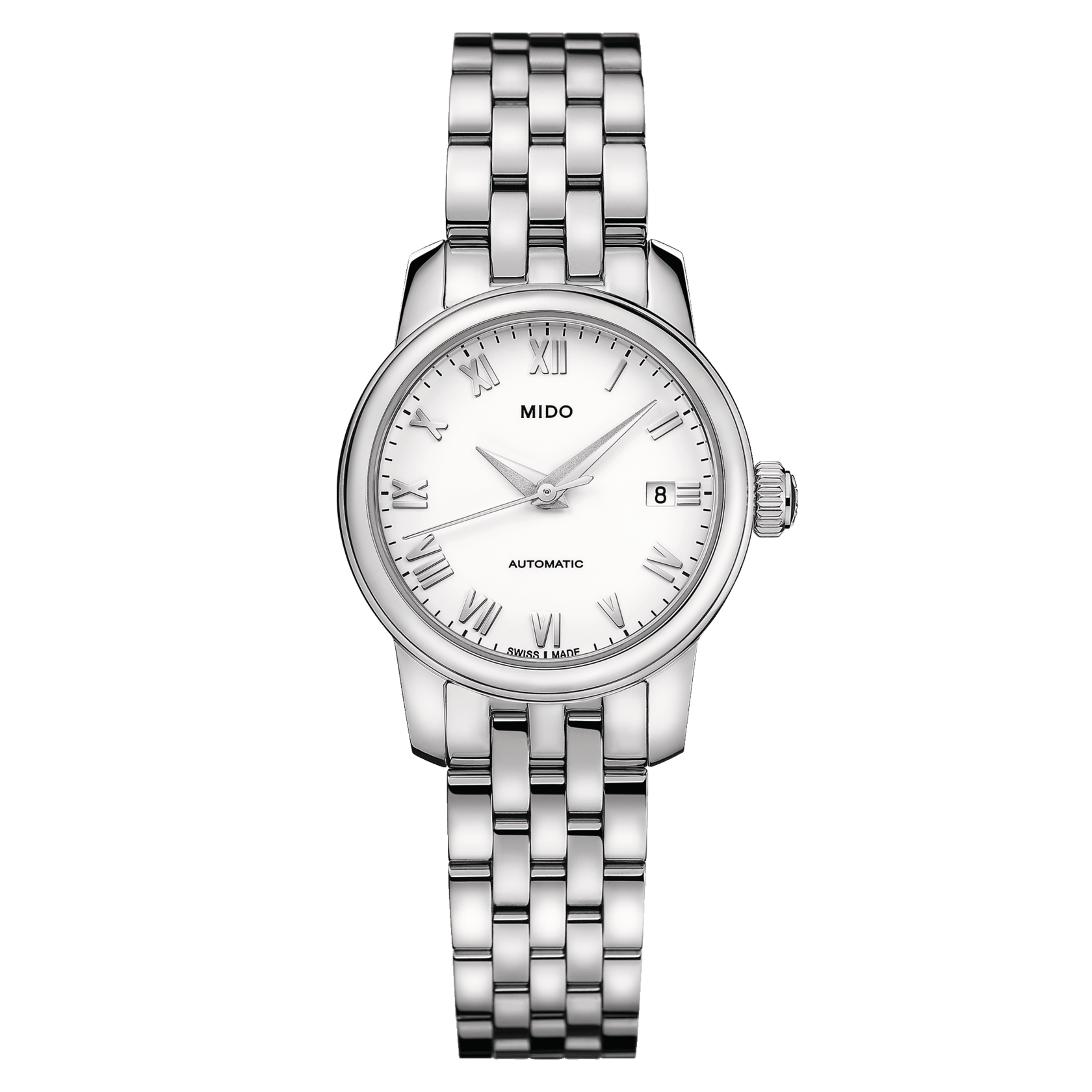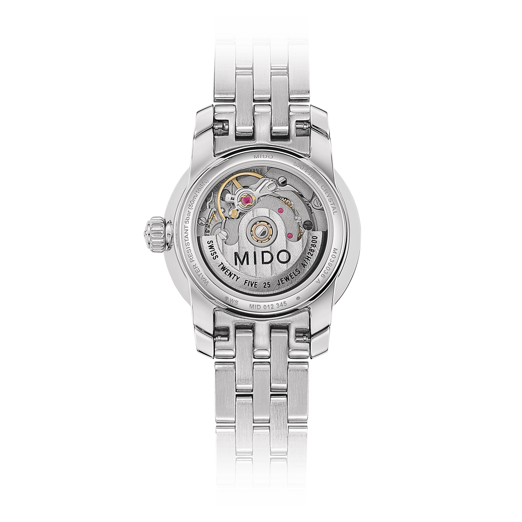 Gentle lines and a small diameter characterize this automatic Baroncelli Lady women's watch. It is available in several different versions, two of which feature a magnificent mother-of-pearl dial and 12 diamonds. Its transparent case back allows the beauty of its finely decorated Elaboré-grade movement to be admired.