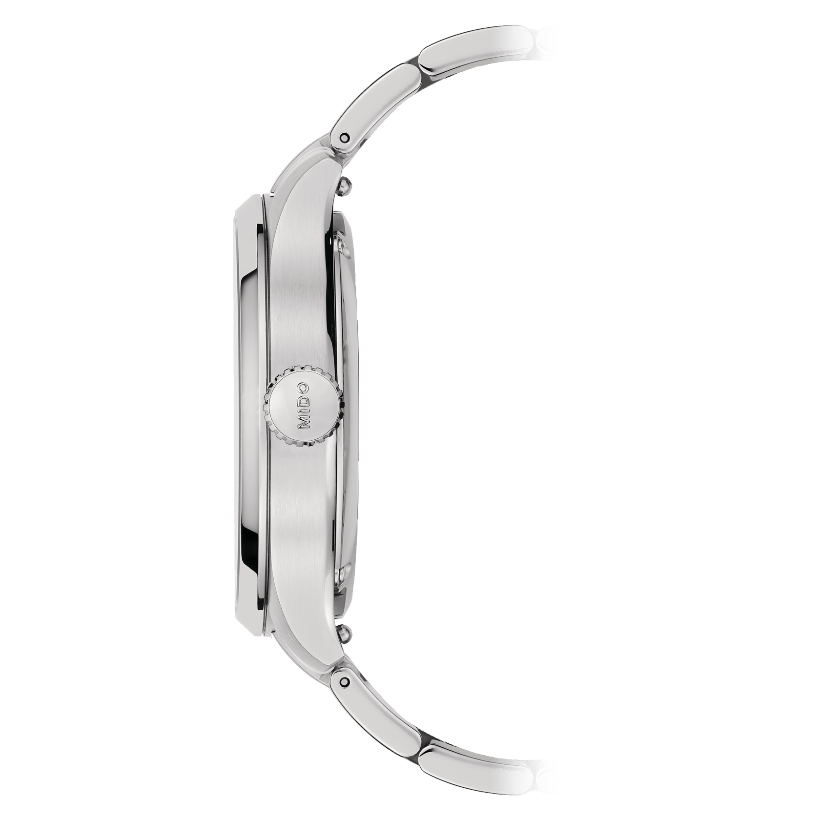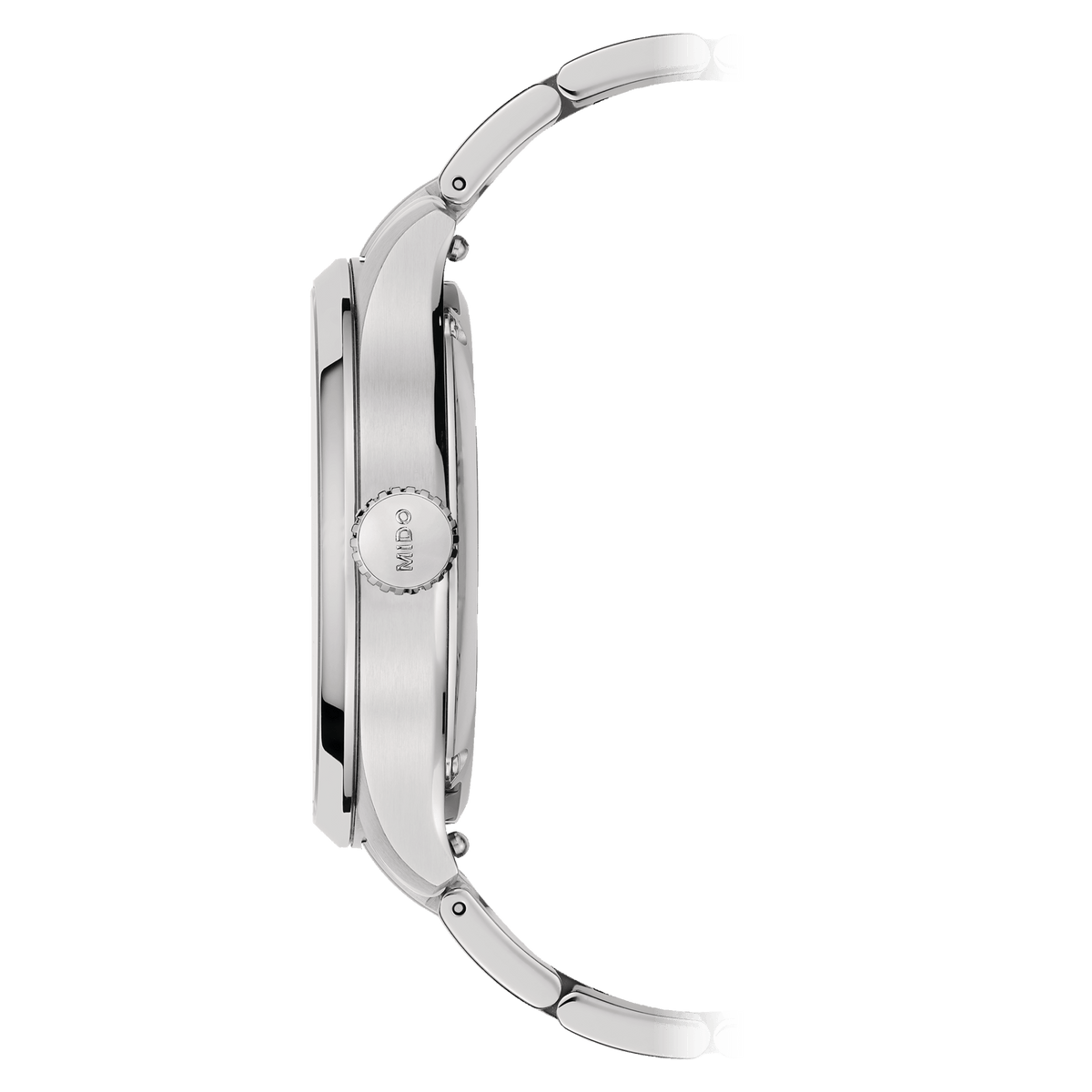 MIDO turns watchmaking excellence into a spectacle of light. On the dial of the new Multifort Mechanical, Super-LumiNova® traces the shape of the calibre's components on the anthracite dial, both in day and night. A masterpiece in a diameter of 44 mm, this limited edition celebrates the 90th anniversary of the Multifort collection. A strong stainels steel body in polished and satined finishes houses an open case back to display its exquisitelly intricate hand-wound Swiss mechanical movement, with a power reserve of up to 46 hours. Two additional interchangeable bracelets complete this piece, thus becoming a symbol of MIDO's expertise.