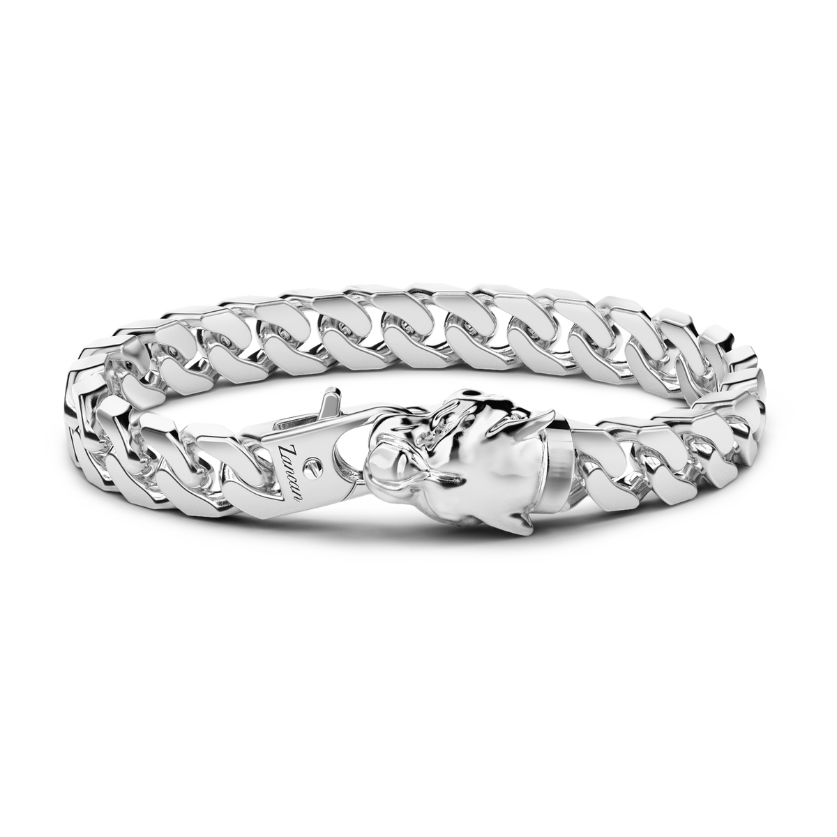 Zancan 925 silver curb chain bracelet. This piece with panther head closure is our best-seller in the Cubane collection. The panther bites into the end of the bracelet, as if to remind us to face the day-to-day challenges that life offers us each day tenaciously. A distinctive bracelet with a strong impact. The bracelet is part of the Cubane collection, inspired by the underground hip-hop scene. The piece is completely crafted by hand in Italy and weighs 21.50 g.