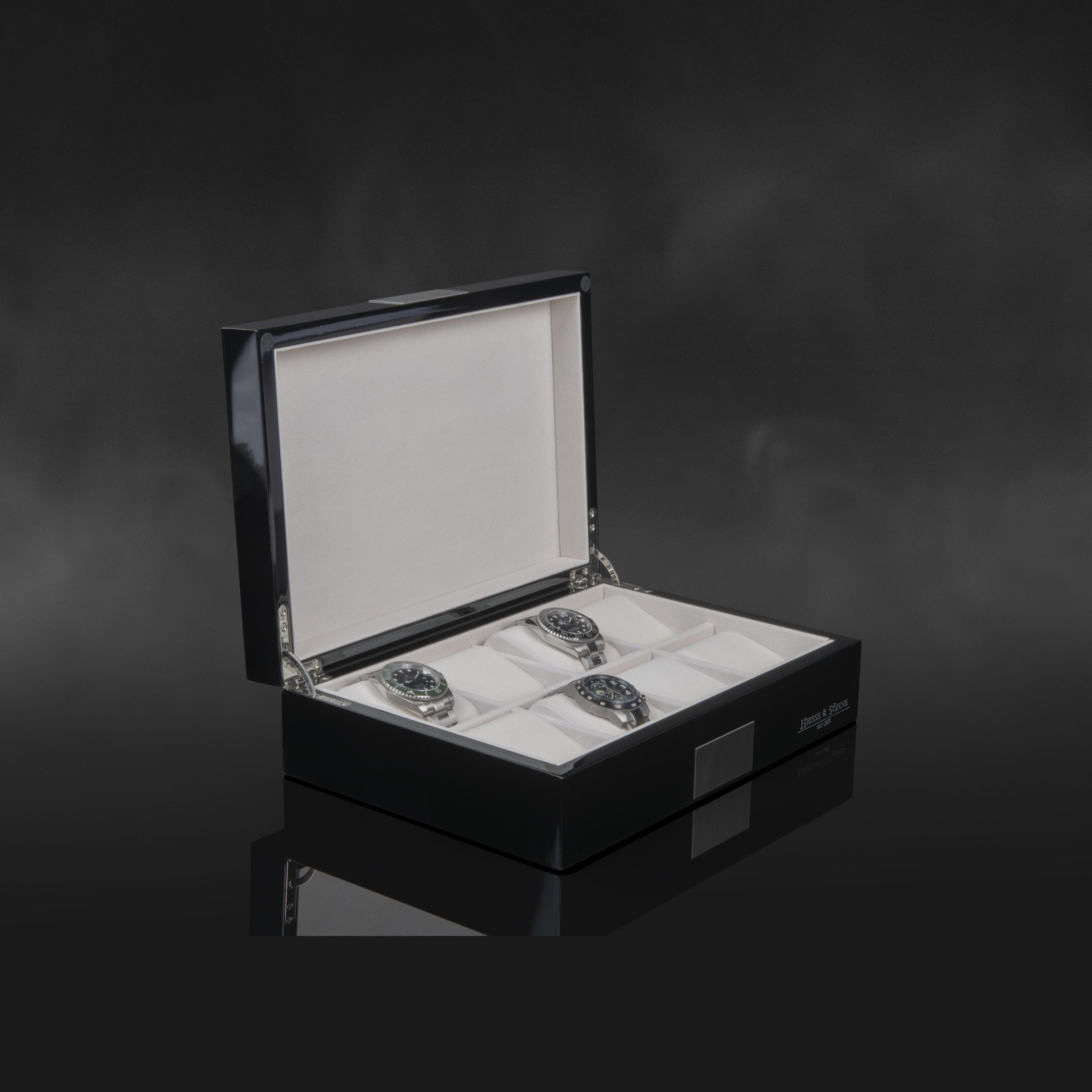 The watch boxes in the Botega series embody timeless elegance and offer a luxurious way to store watches safely and stylishly. Available in three elegant color variants, they satisfy every wish: classic black for a modern and sleek aesthetic, fine burl wood for a touch of opulent tradition and timeless rosewood for a warm, luxurious look. No matter what style you prefer, the Botega series offers a suitable solution to showcase your watches in style.