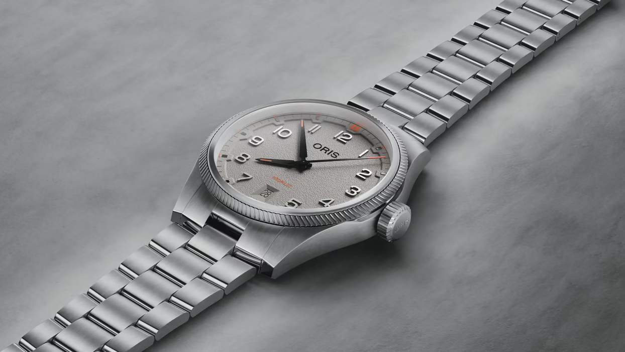The Oris ProPilot Date (Ref. 01-733-7805-4163-07-8-20-04LC) is a sleek and dependable pilot’s watch crafted for everyday use. Featuring a 41 mm multi-piece stainless steel case with the signature angled turbine-style bezel, this timepiece perfectly balances ruggedness and refinement. Its textured chalk-gray dial gives an instrument-like feel, while large applied Arabic numerals and luminous hands ensure standout legibility in any light.