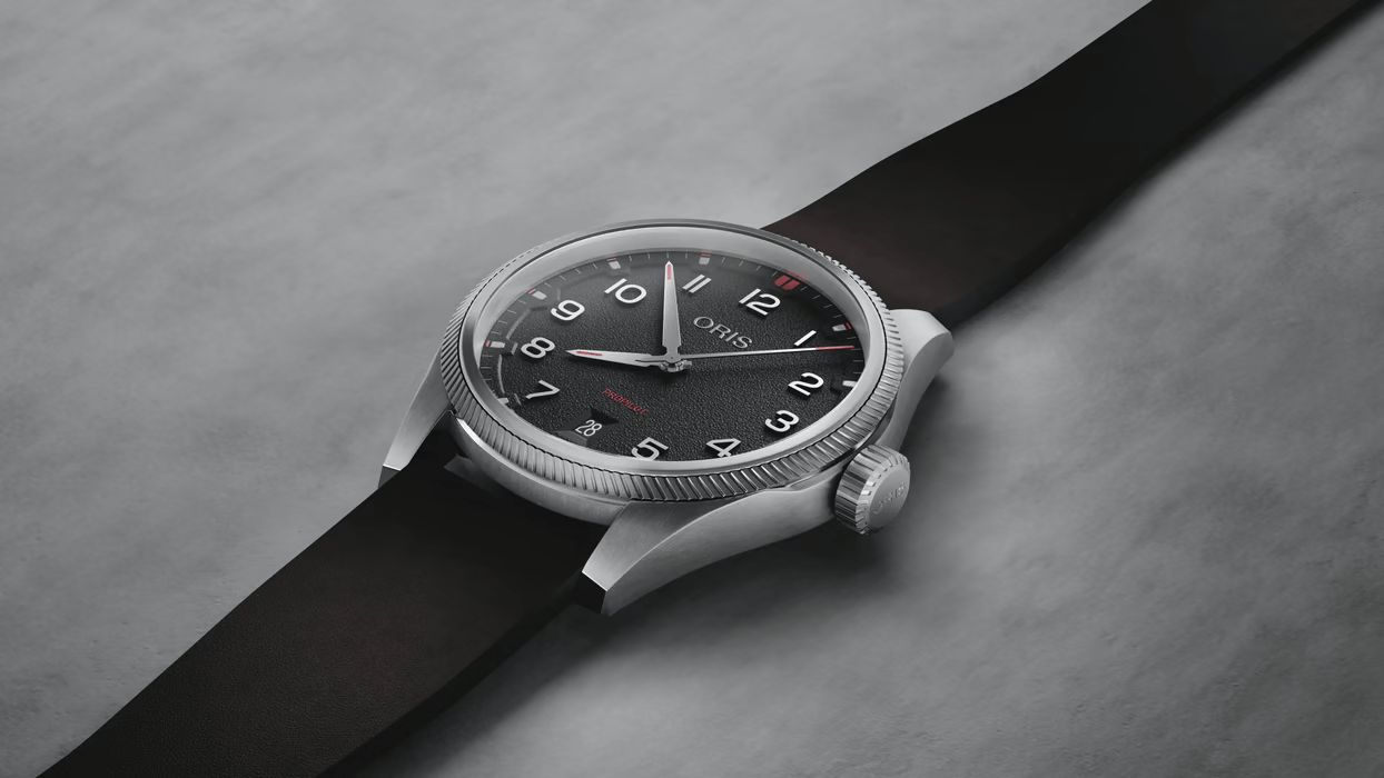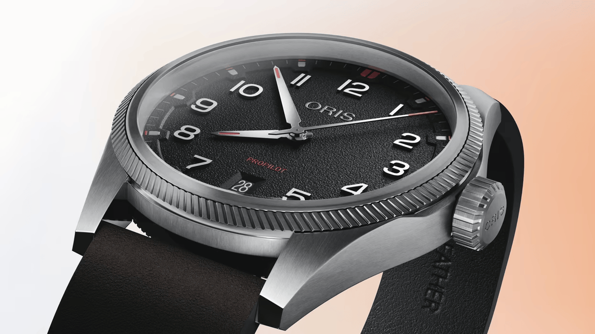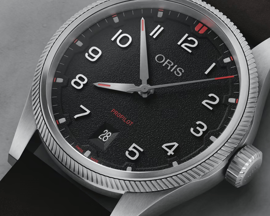 The Oris ProPilot Date (Ref. 01-733-7805-4164-07-6-20-14LC) captures the spirit of aviation with modern finesse. Built in a rugged 41 mm stainless steel case and paired with a sleek black leather strap, this watch is designed for both performance and elegance. The textured black dial enhances legibility. Powered by Oris’s automatic Calibre 733 (based on the Sellita SW200), it offers a reliable 41-hour power reserve and a date window, making it as functional as it is stylish.