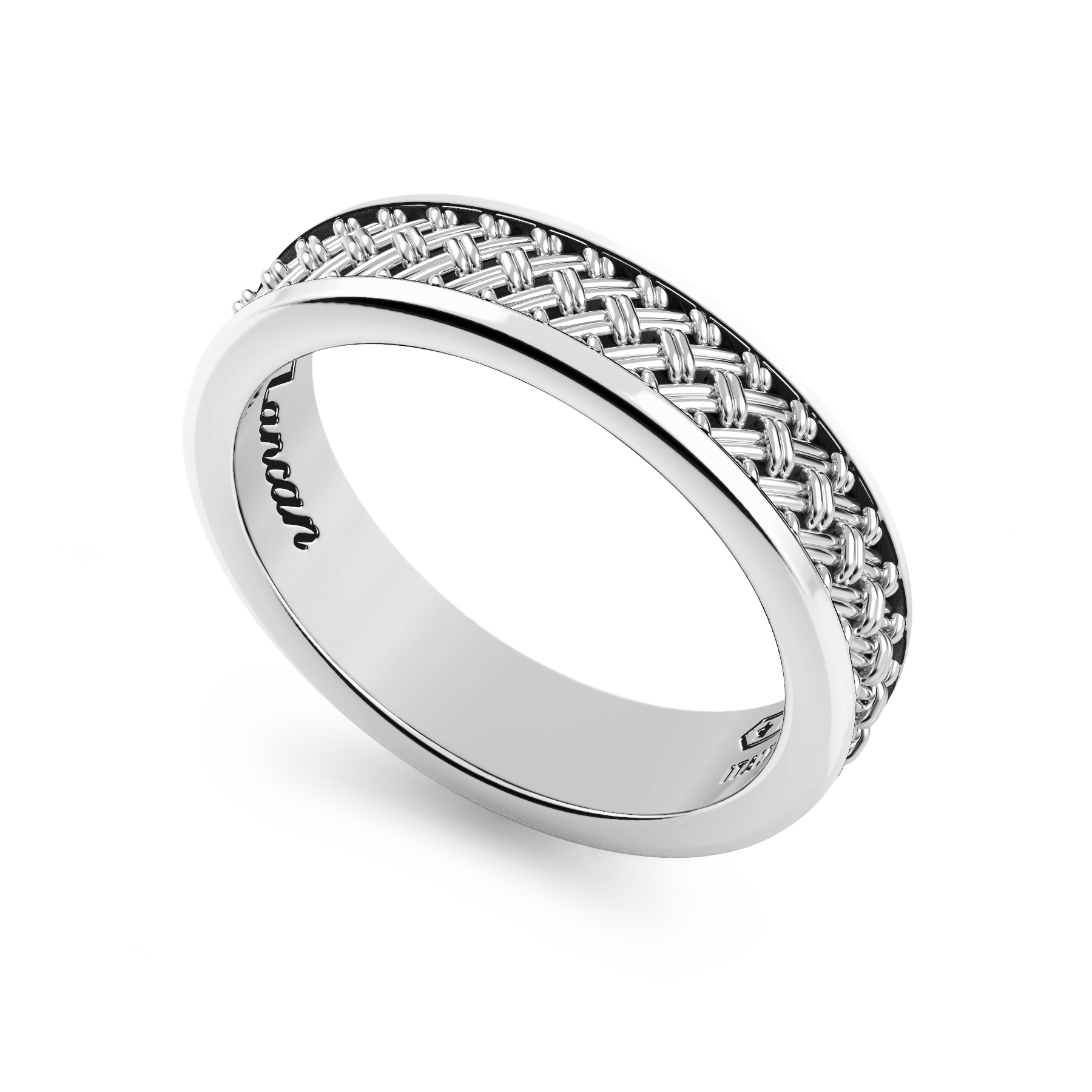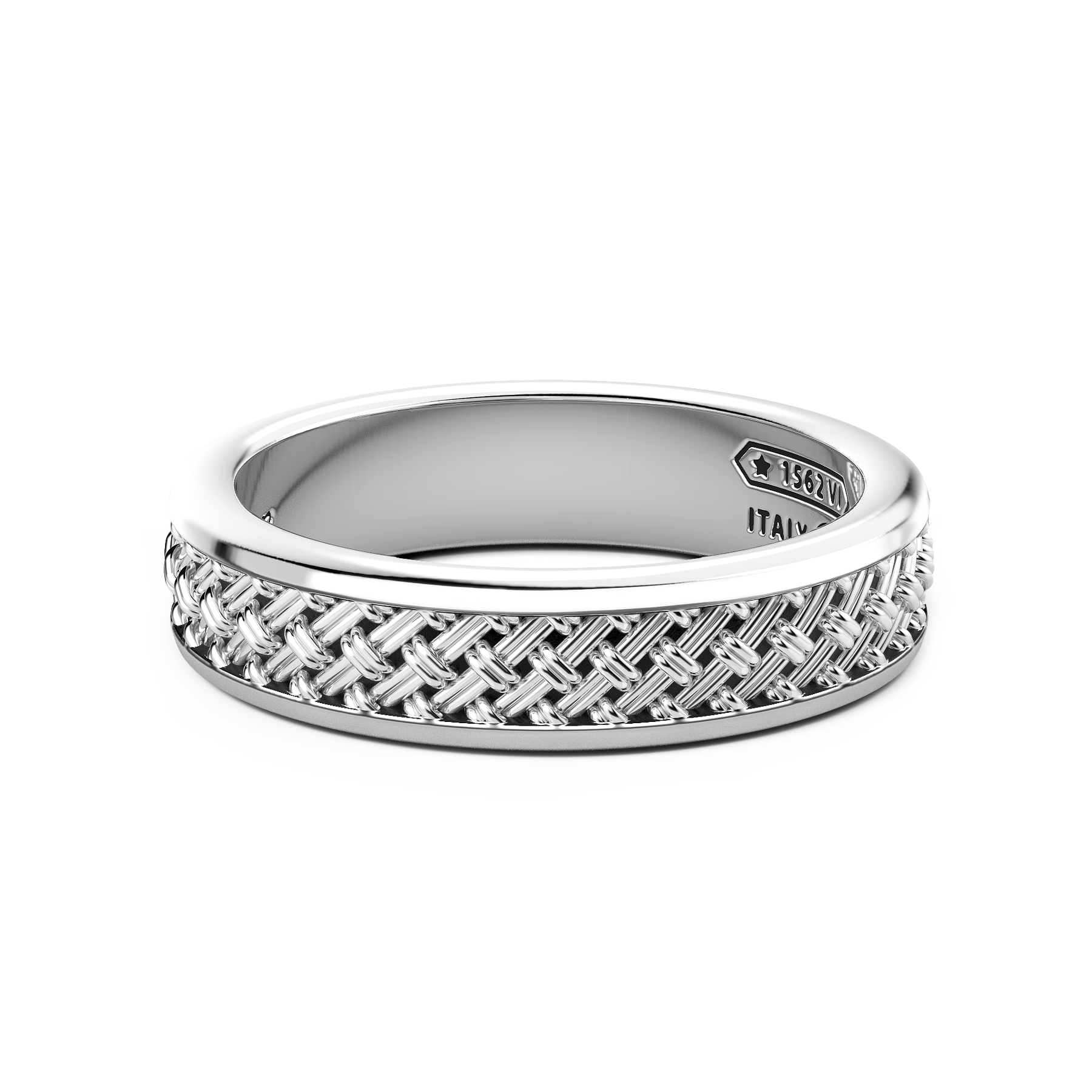 Zancan 925 silver band ring. The piece has an interwoven effect that runs over its entire inner surface. The ring is part of the Cosmopolitan collection, inspired by fast-paced contemporary city life.